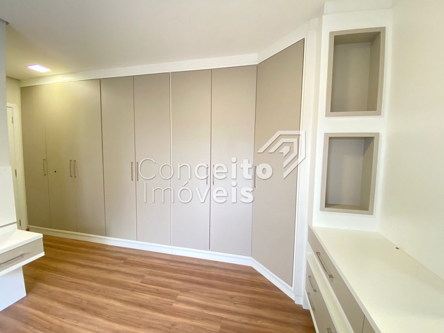 03 quartos sendo 01 suíte, sala com painel para 02 ambientes, sacada com churrasqueira, bwc social, cozinha planejada, escritório com bancada, lavanderia independente, lavabo, 02 vagas de garagem.