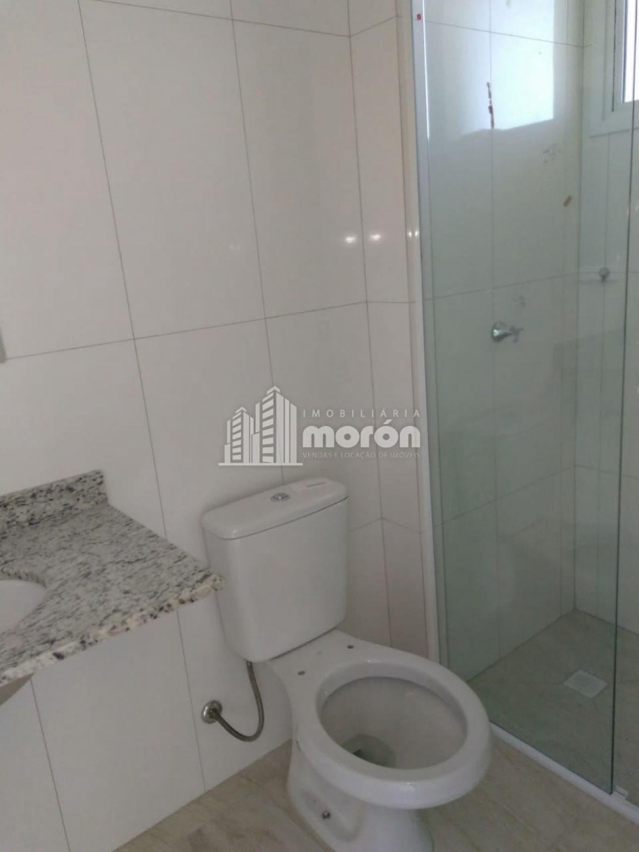 - banheiro com pia granito, box e espelho