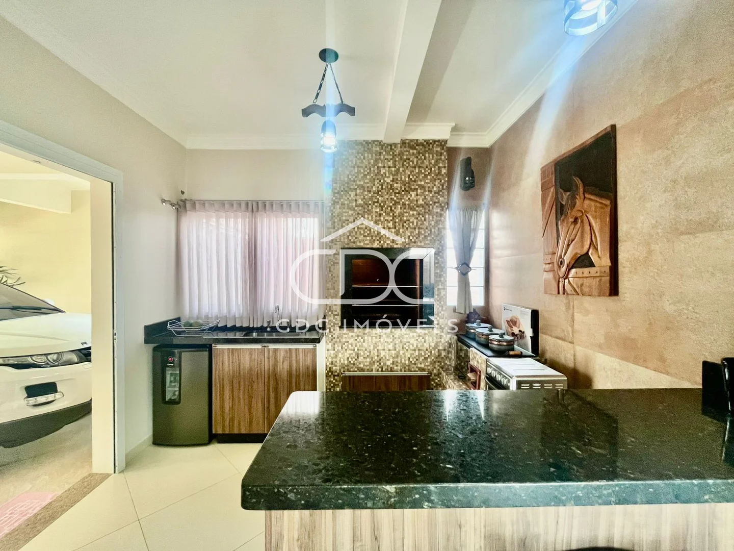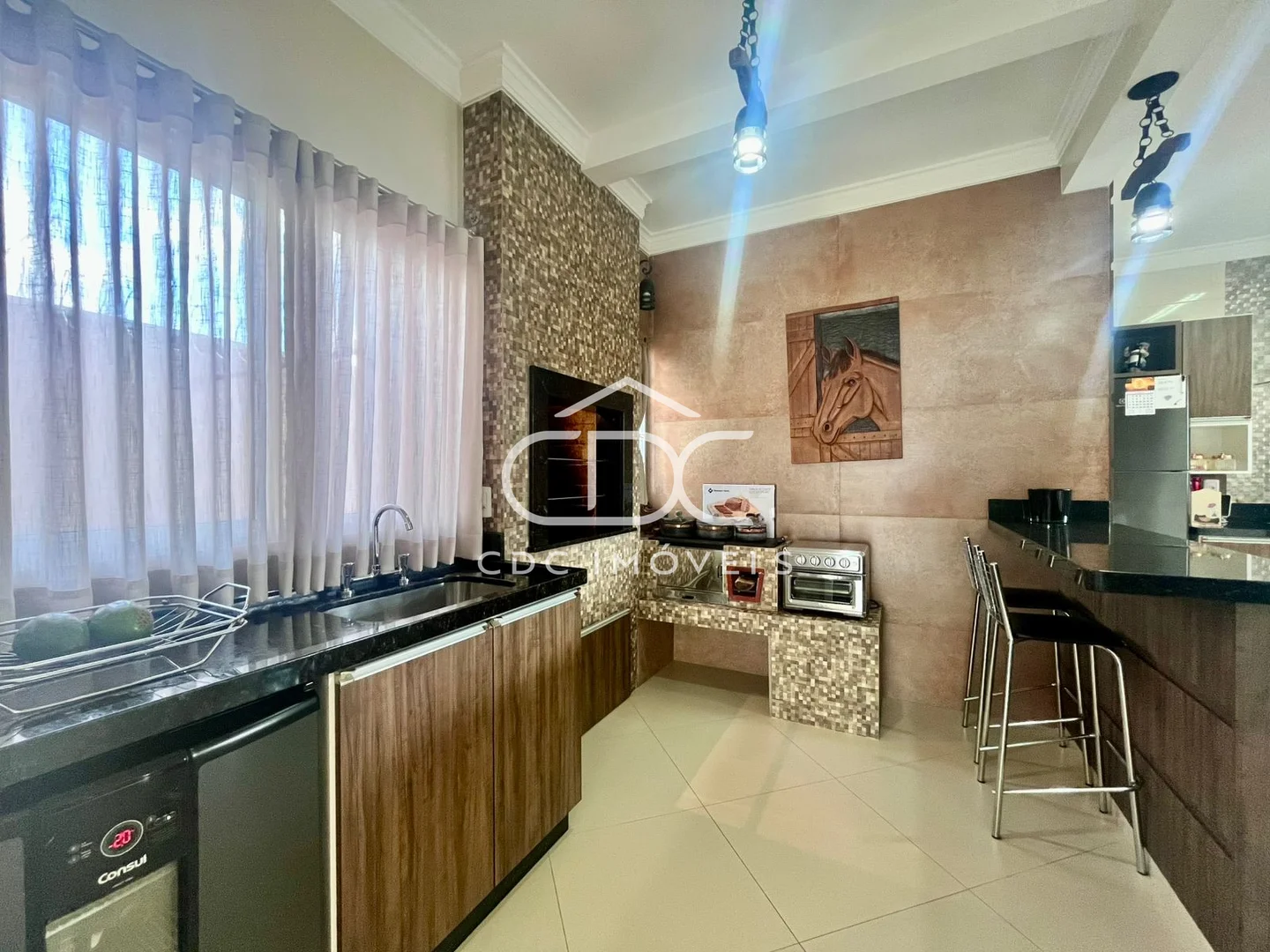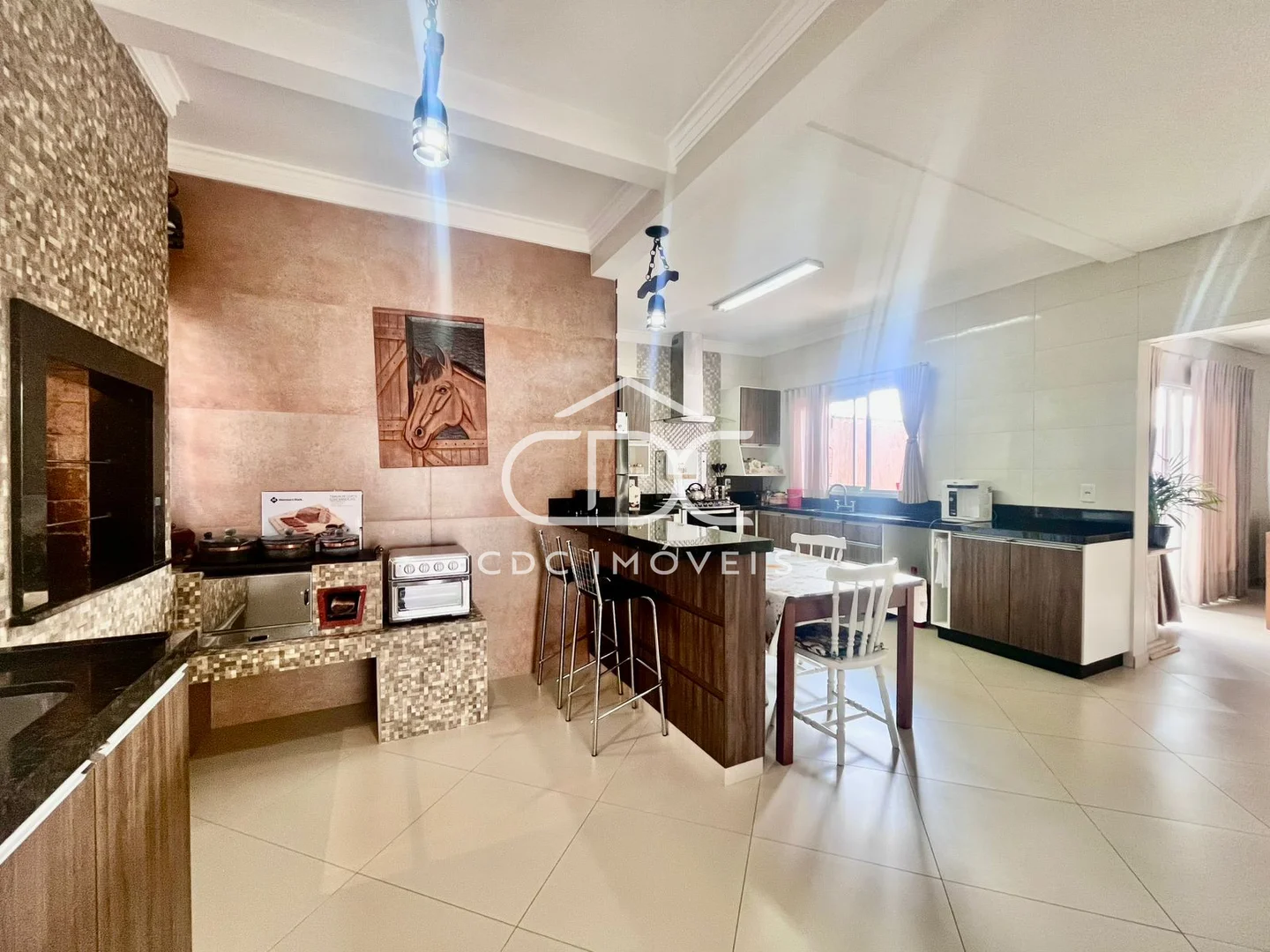- Área gourmet com fogão a lenha;
