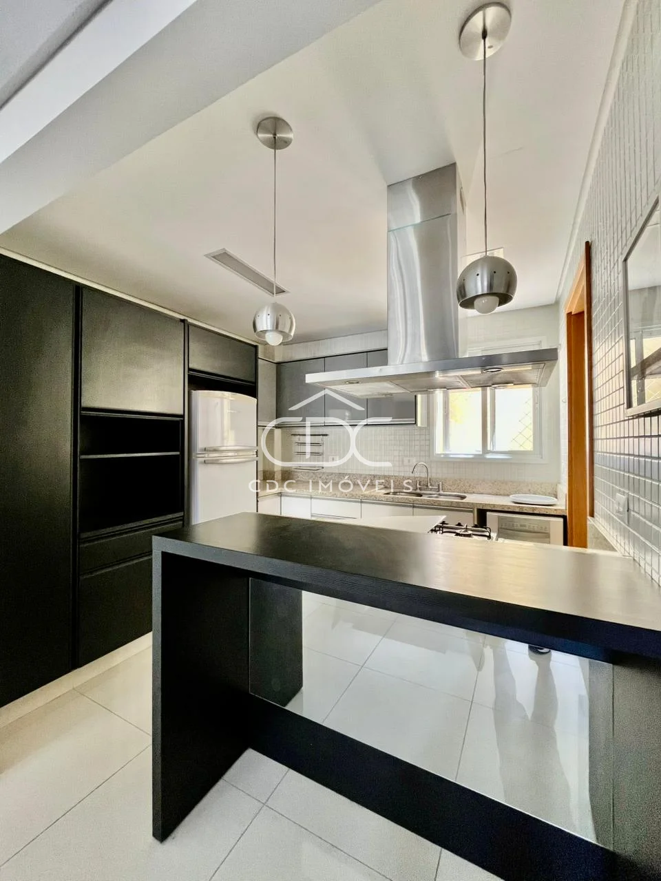 - Cozinha completa com fogão, coifa, geladeira e máquina de lavar louças;