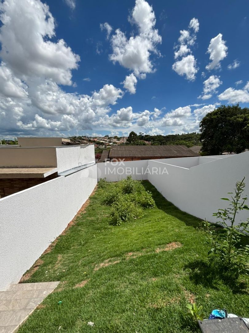 3 quartos, sala de estar, cozinha, banheiro social com nicho e bancada, área de serviço coberta e garagem para até 2 carros.