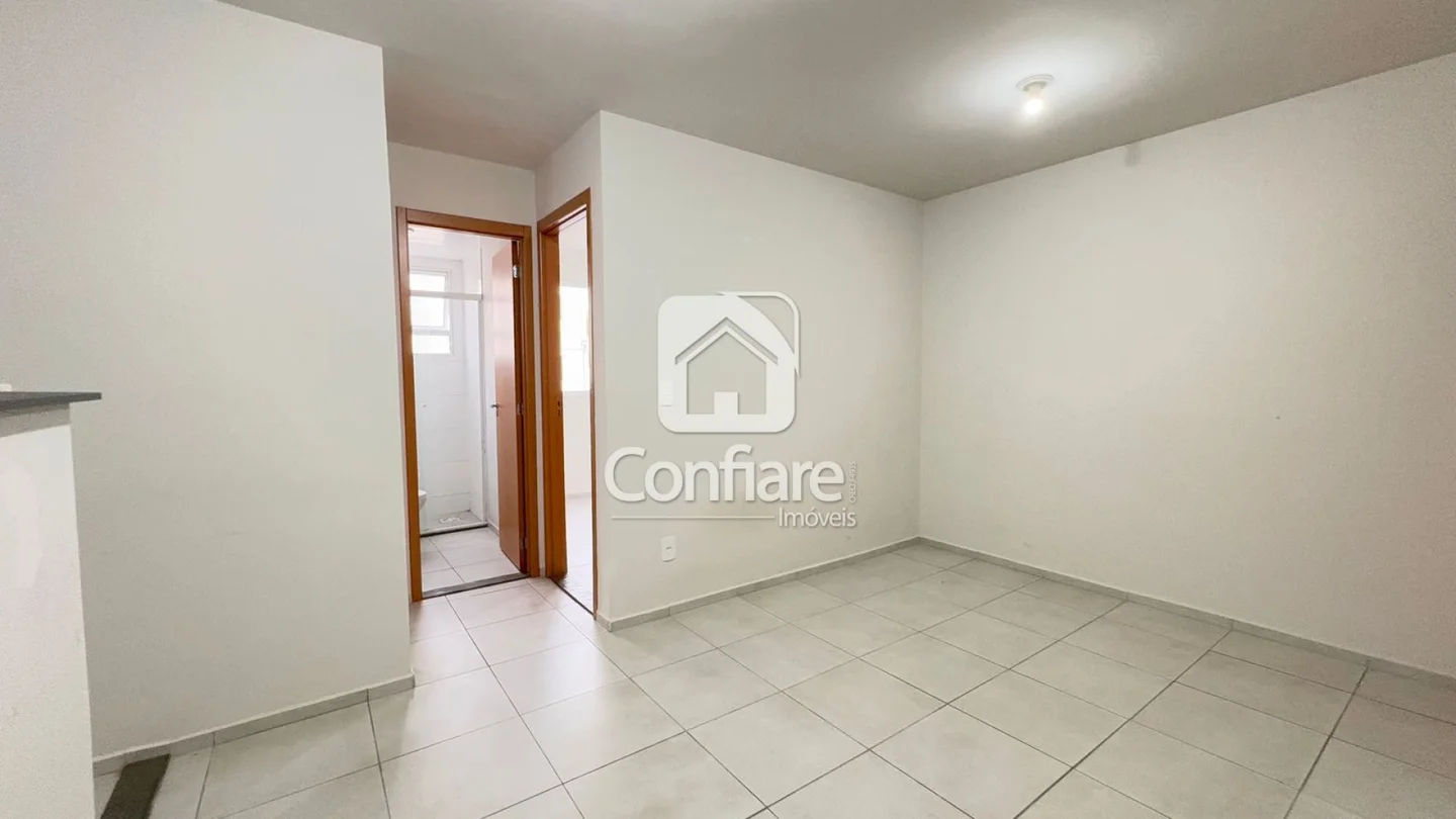 Lindo apartamento Garden no Pontal da Serra, com 2 quartos, sala, cozinha e área externa coberta.