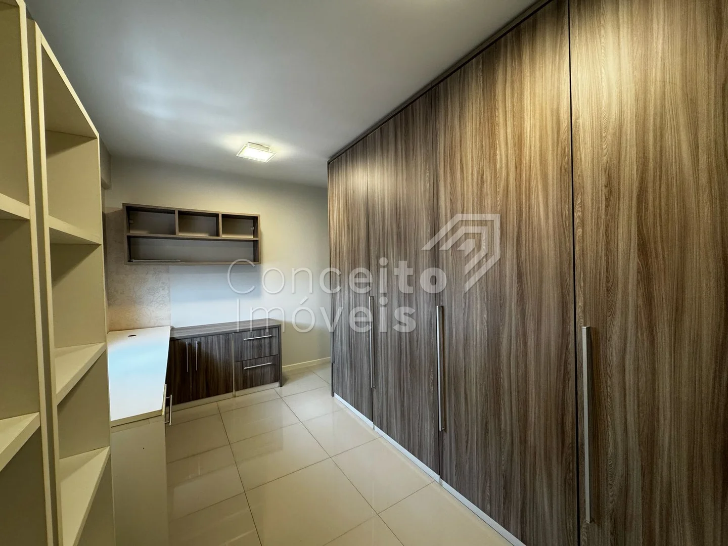 Possui 3 dormitórios (sendo 1 suíte com closet), ambos com veneziana integrada, cozinha com planejados, banheiro social, sala de estar e sala de jantar, churrasqueira, área de serviço e uma vaga de garagem.