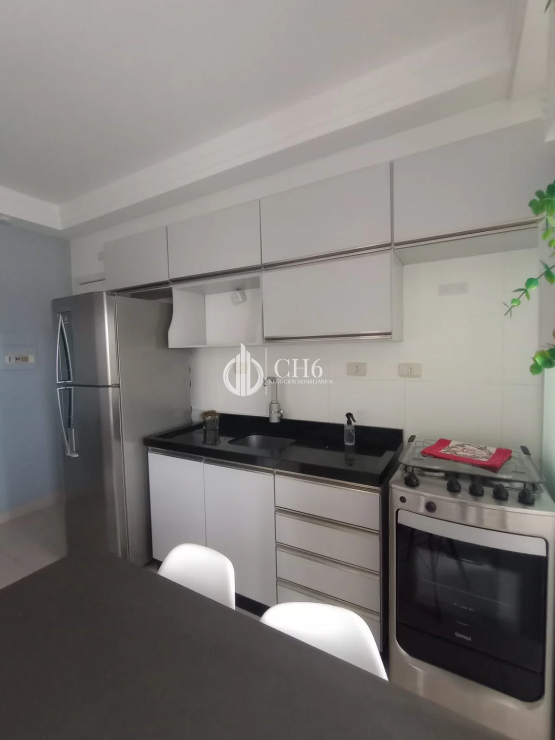 O imóvel é composto por dois dormitórios, ambos com móveis planejados, além de uma sala ampla para dois ambientes, que proporciona versatilidade e aconchego. A cozinha, funcional e bem equipada, integra-se de maneira harmoniosa aos demais espaços, contando ainda com lavanderia fechada, garantindo maior organização e discrição no dia a dia.