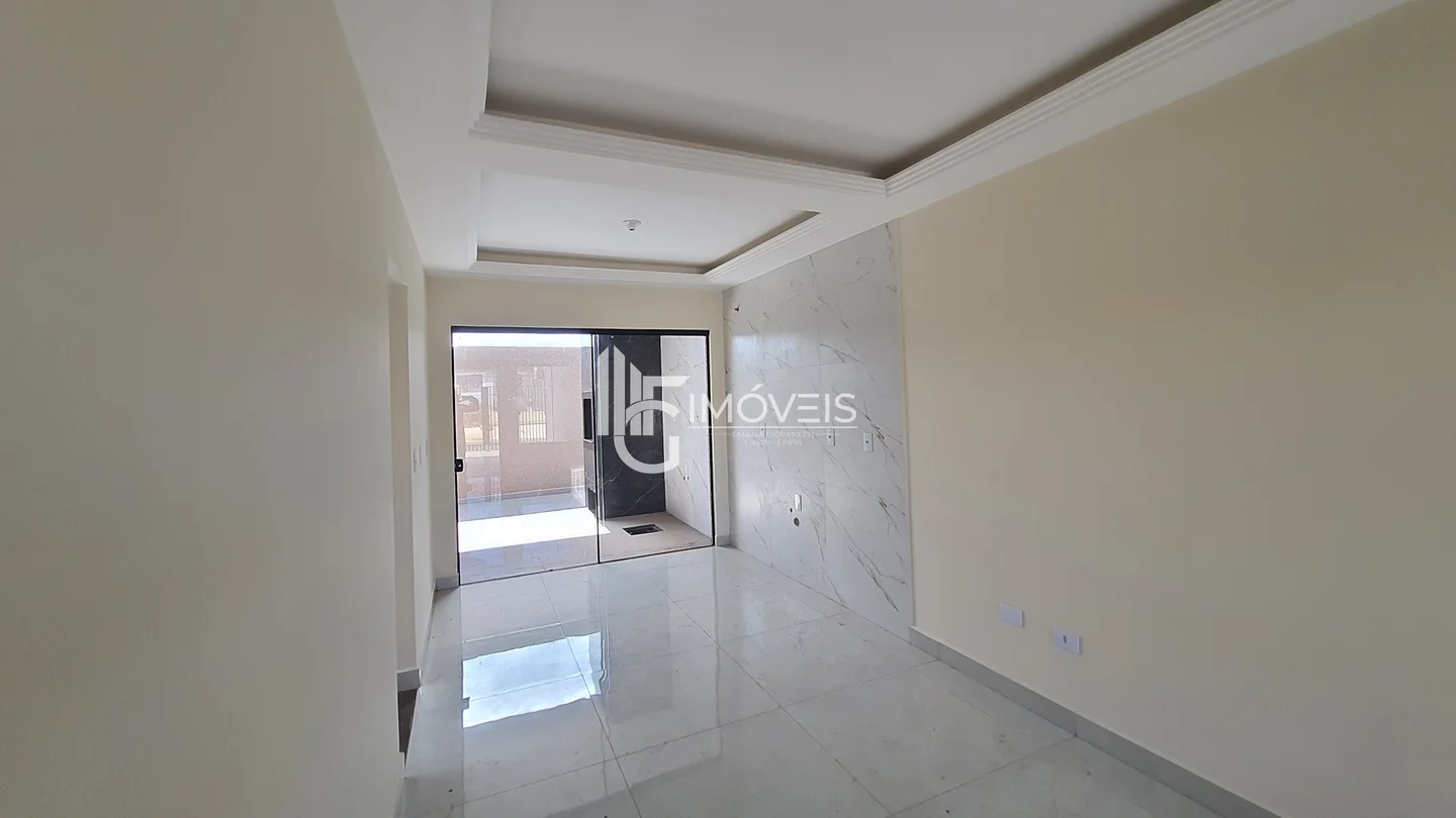 Casa a venda com aproximadamente 70 m² contendo 3 quartos, sendo 1 suíte, sala, cozinha, banheiro, área de serviço, churrasqueira, vaga de garagem. Com molduras em gesso em todos os ambientes do imóvel.