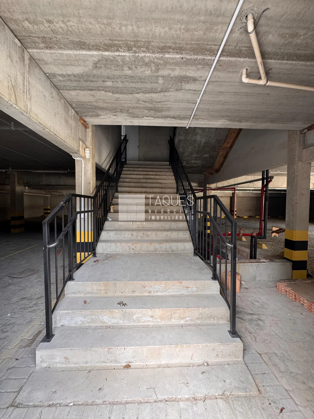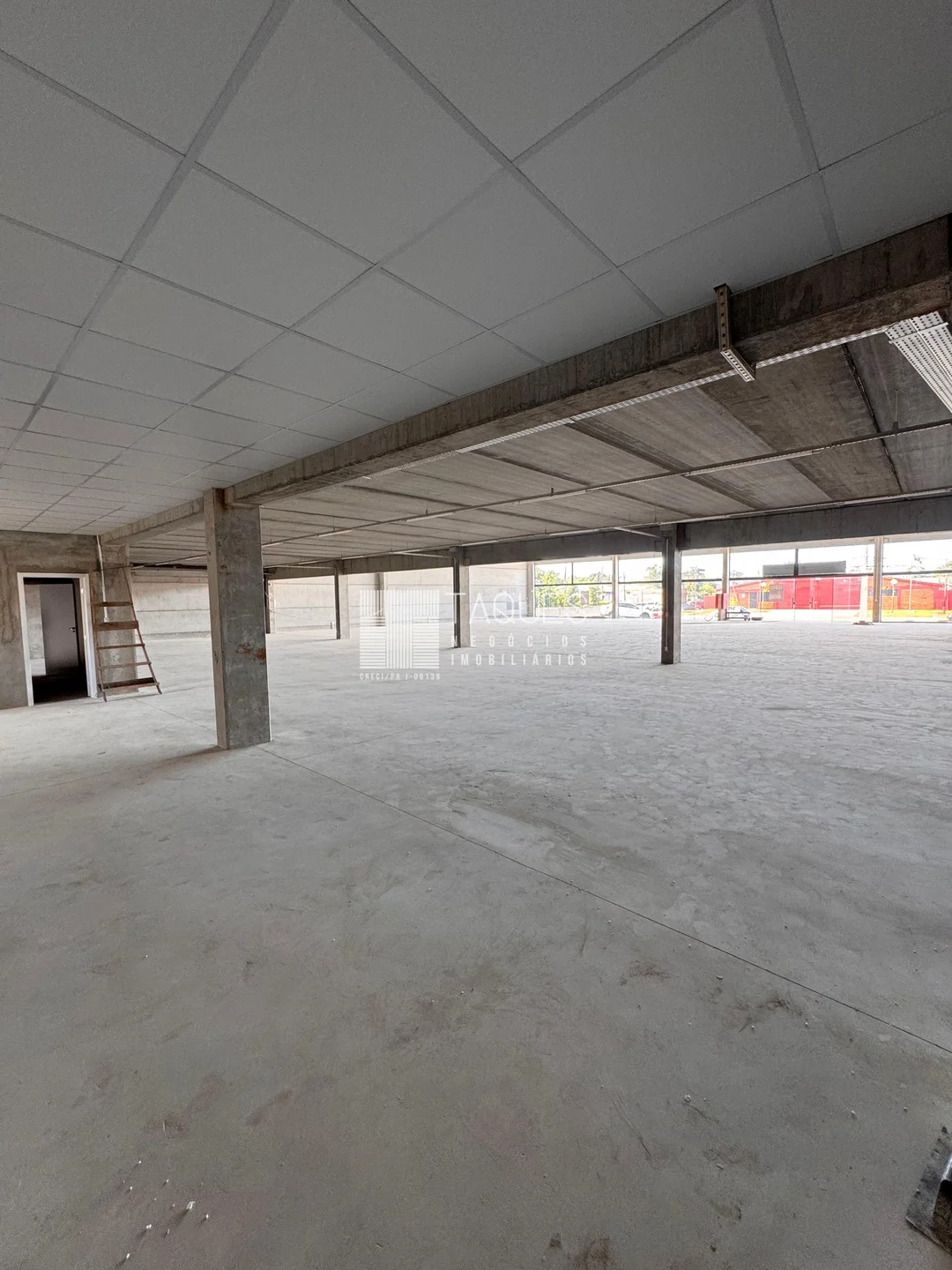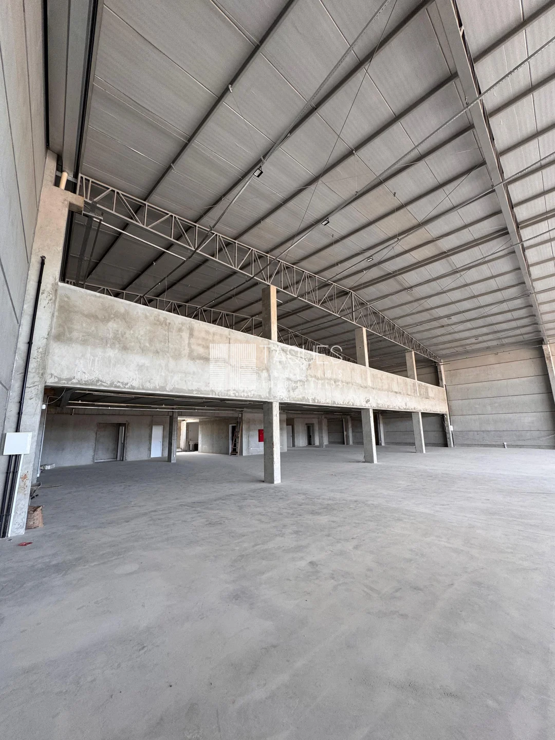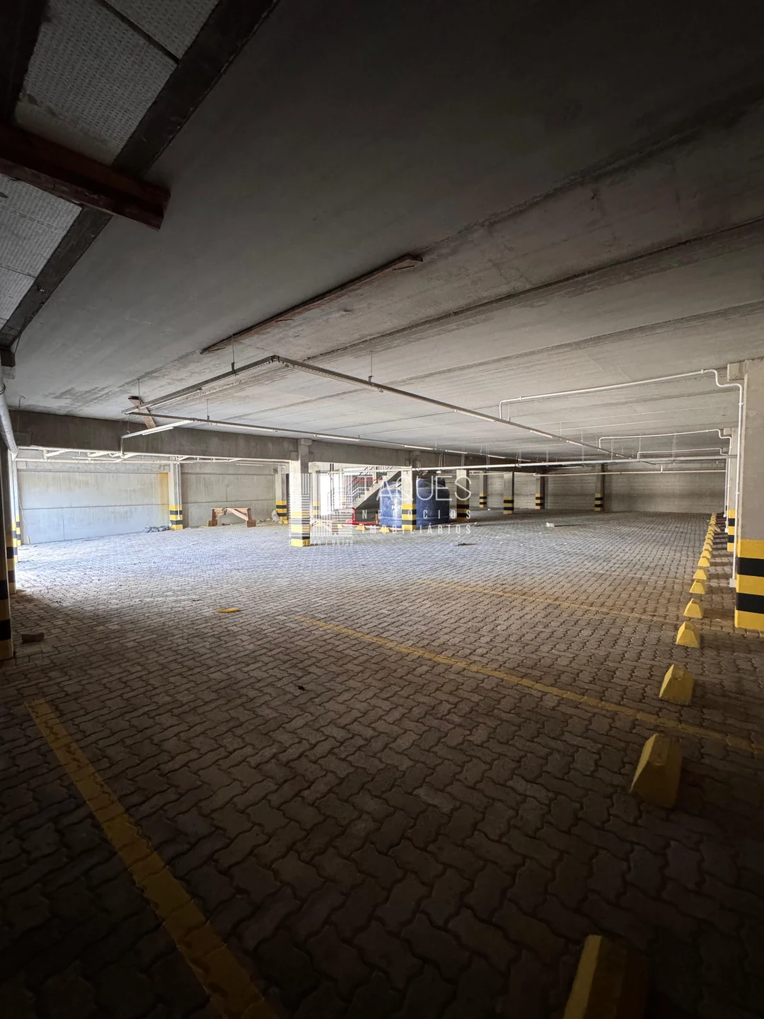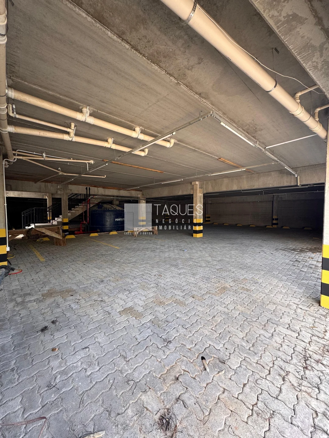 O barracão tem de área total 1589m2, divido em três pisos: No piso térreo contamos com aproximadamente 907m2, com banheiros masculino, feminino, banheiro com acessibilidade e 2 copas. No piso inferior contamos com diversas vagas de garagem. Já no piso superior contamos com um mesanino com aproximadamente 446m2.