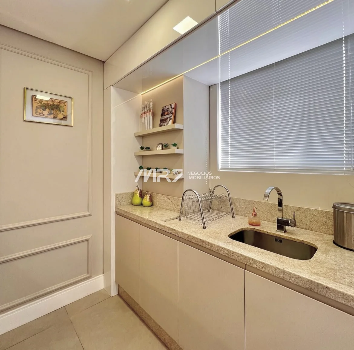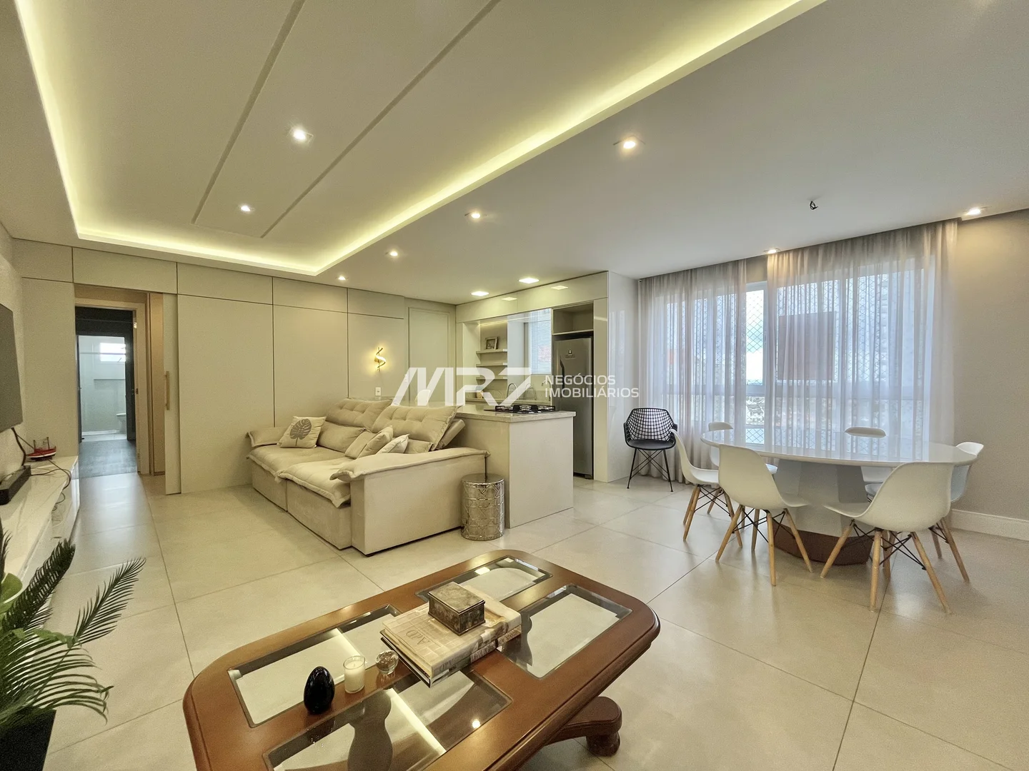 Excelente apartamento semi mobiliado com aproximadamente 115,88 m², contendo 2 quartos sendo uma suíte, sala para 2 ambientes, cozinha com armários, lavanderia, banheiro social, 1 vaga de garagem.