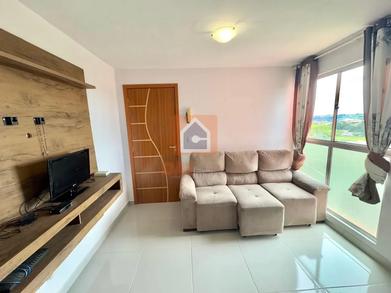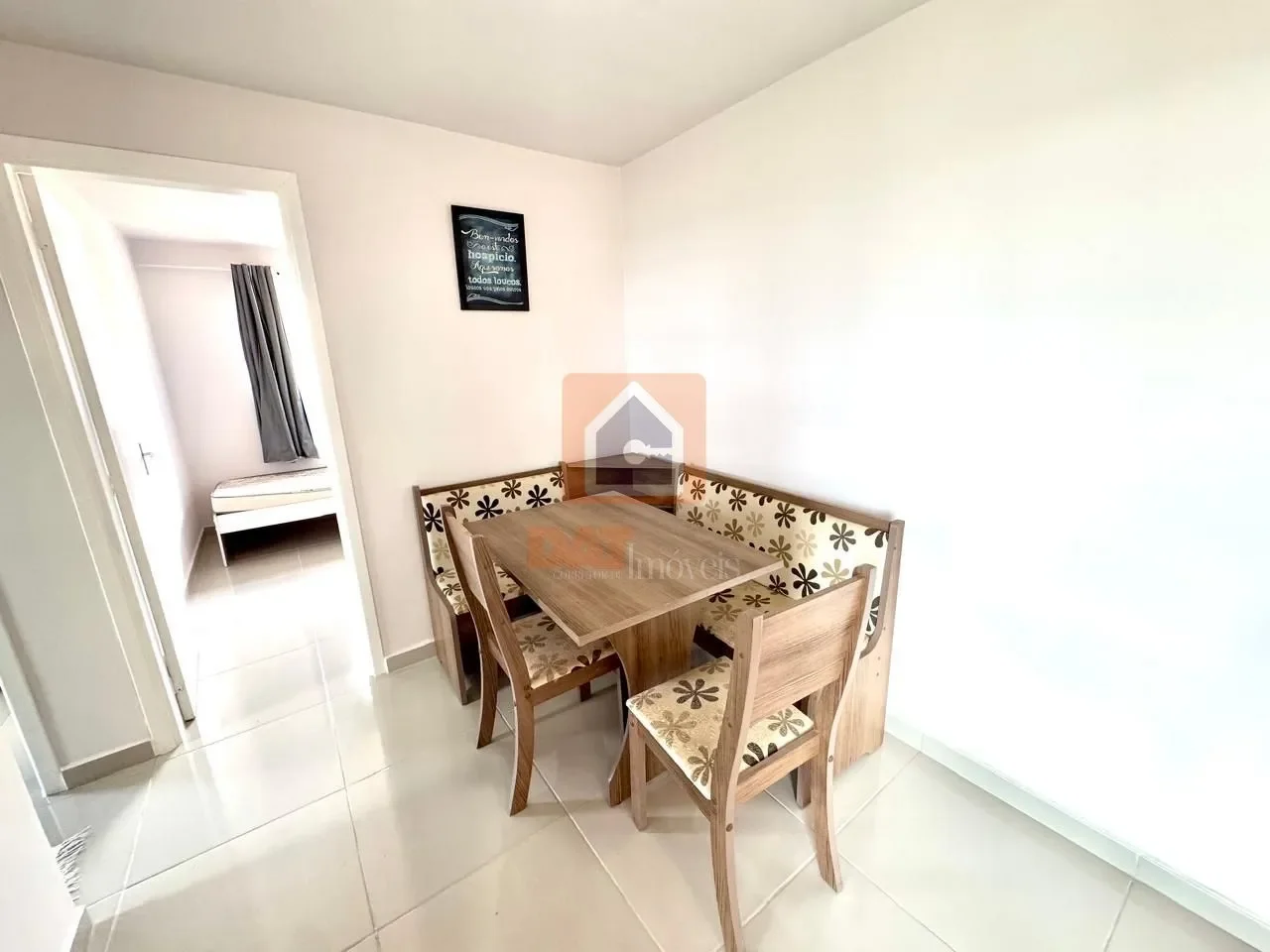 Possui sala para 2 ambientes com sofá, painel para TV e canto alemão;