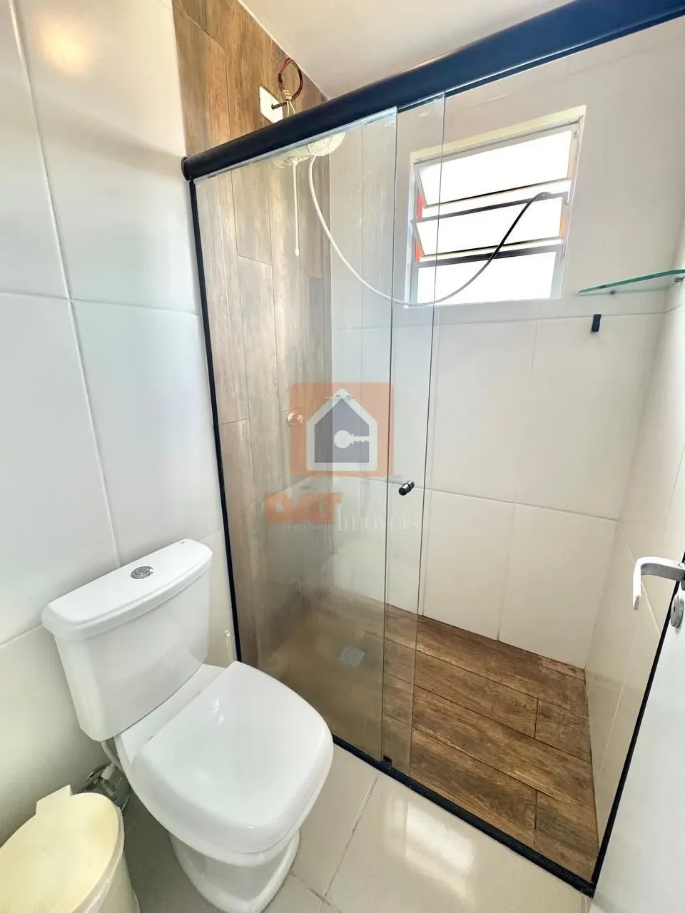 Banheiro social com box de vidro;