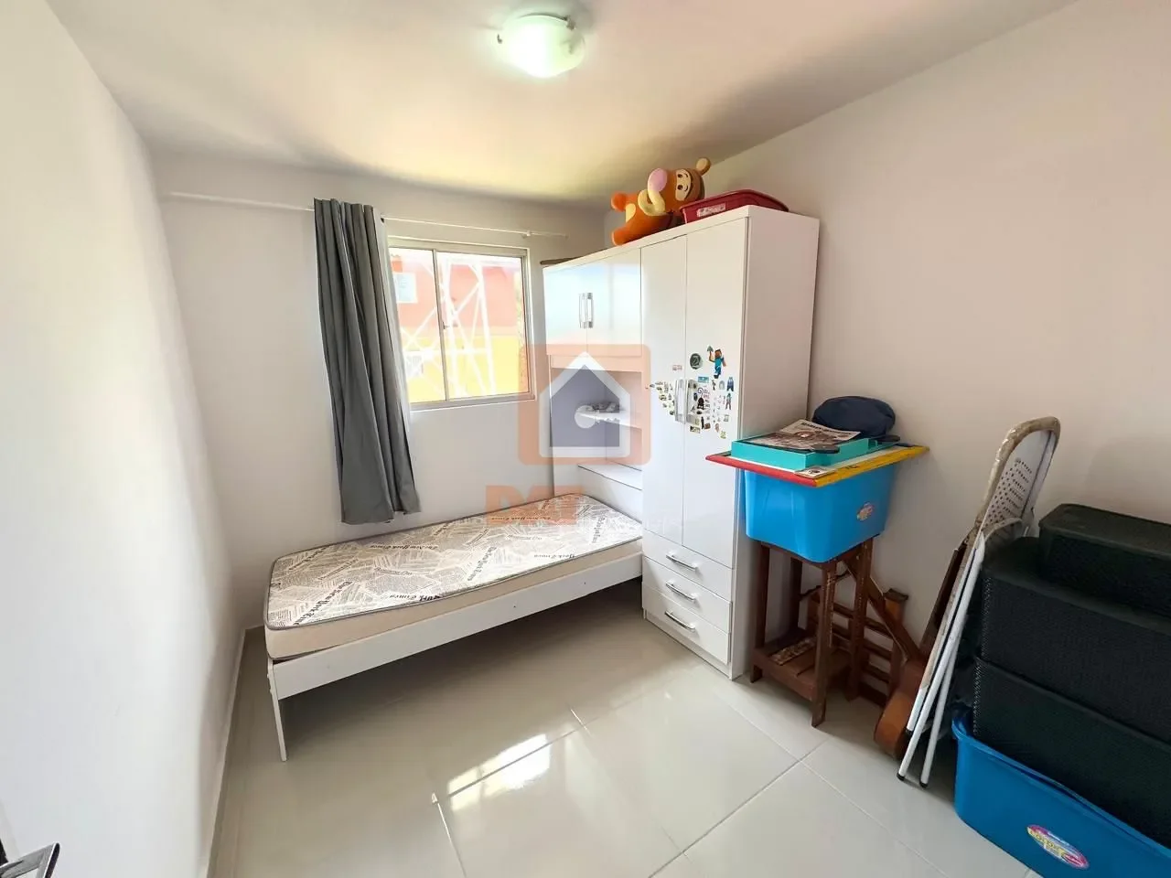 2 quartos, sendo 1 com guarda-roupa e o outro com cama de solteiro e guarda-roupa;