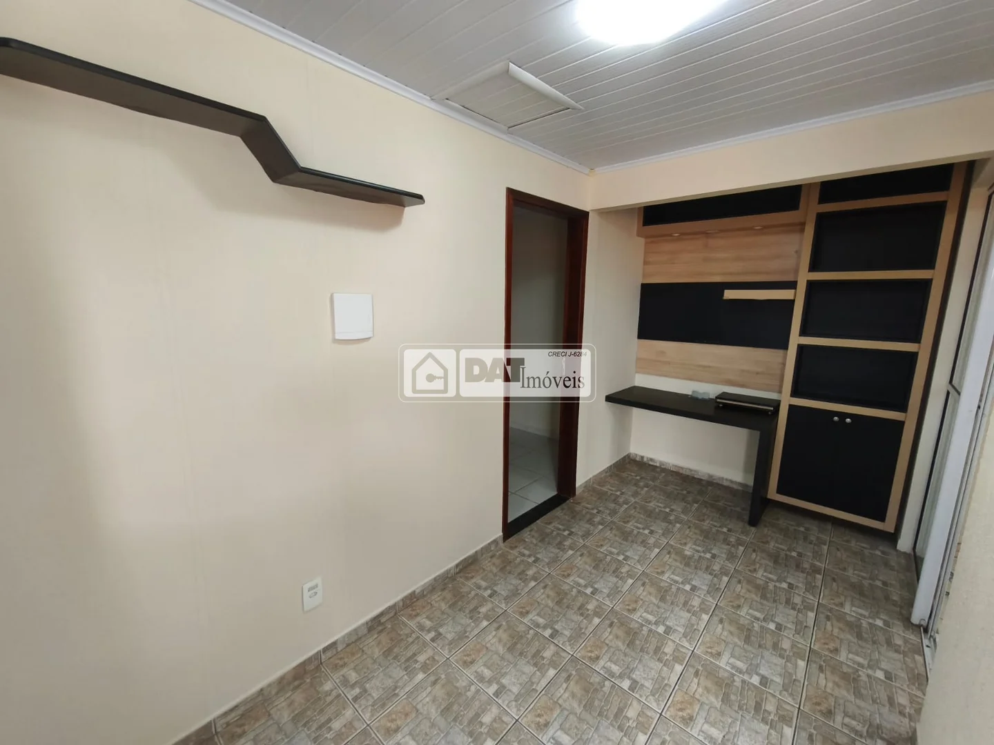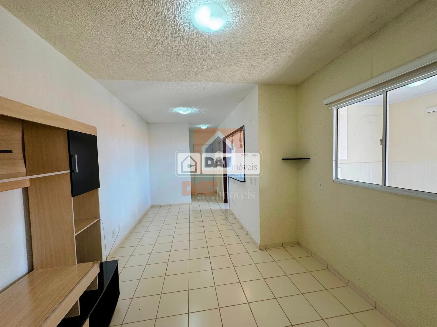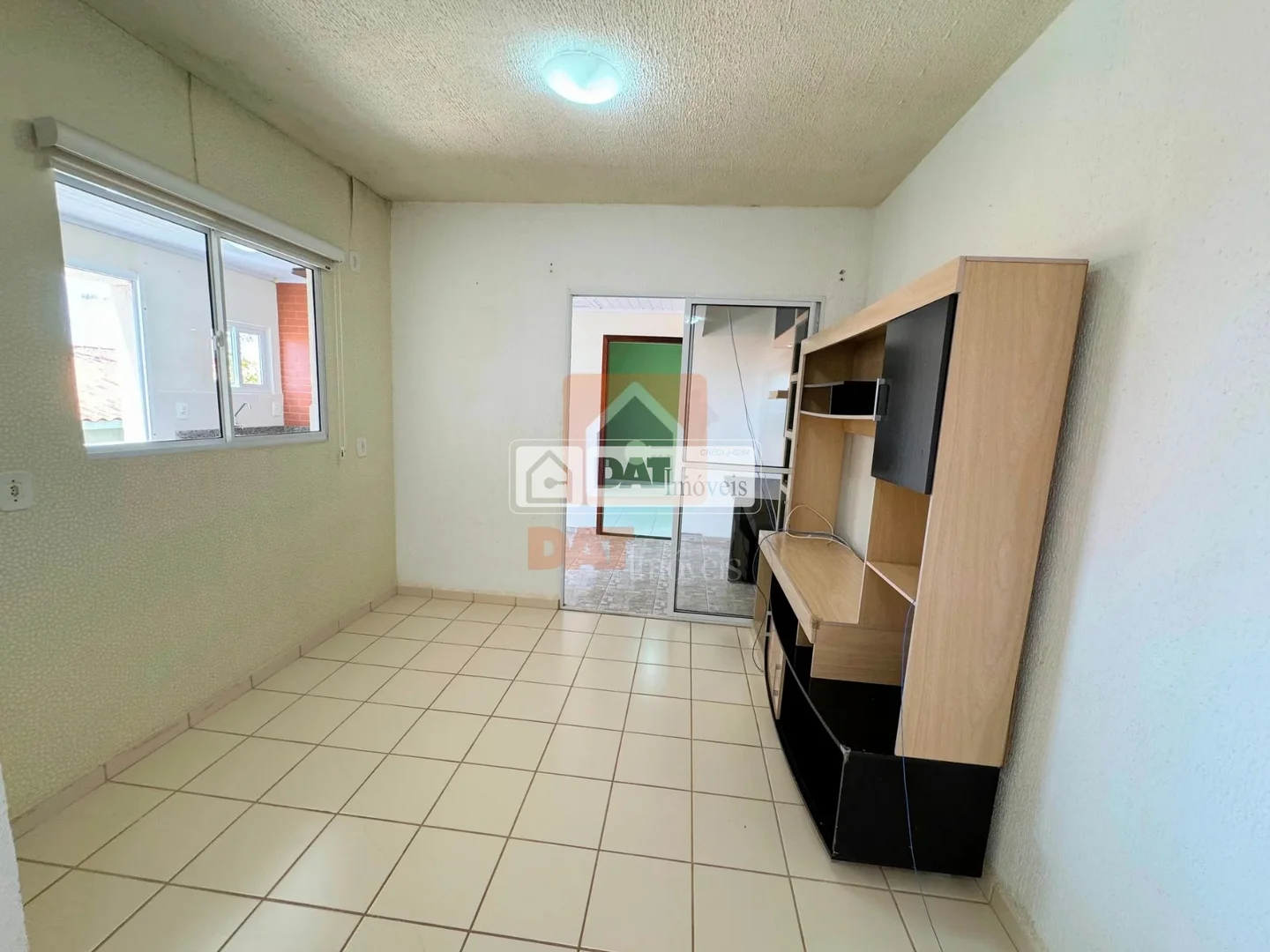 Sala para 2 ambientes, com estante para TV;
