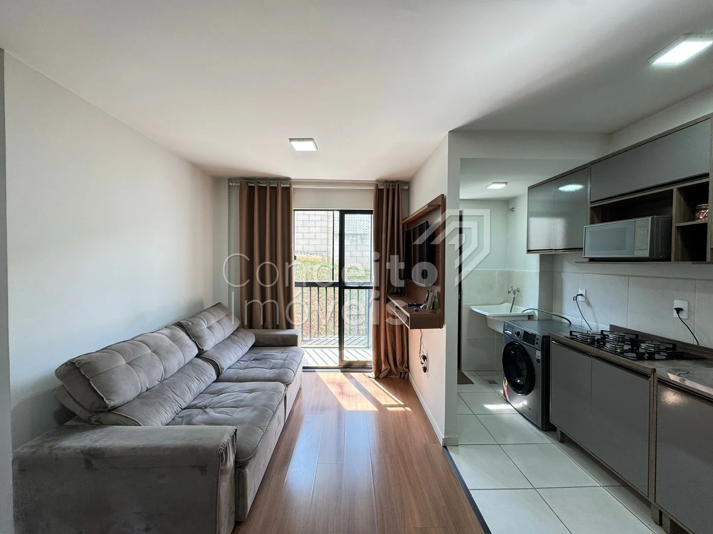 Apartamento semi mobiliado contendo 02 quartos, sala para 02 ambientes, cozinha com armários e lavanderia integrada, sacada com churrasqueira e uma vaga de garagem.