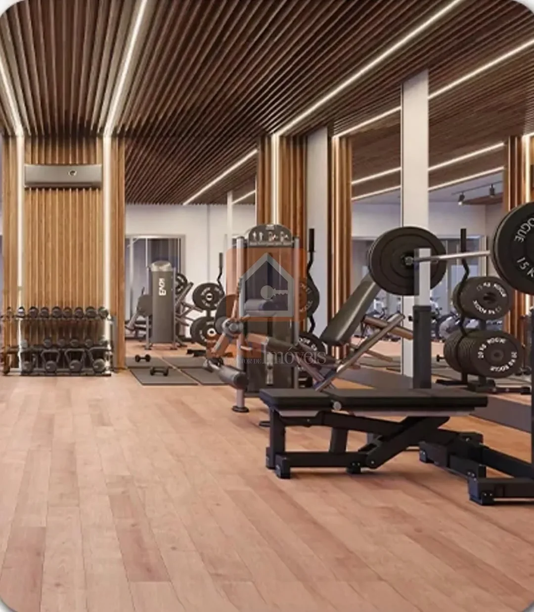 Projeto inovador com Sala-Varanda com 39 m², com fechamento em vidro, sistema de abertura total e ar condicionado individual;
