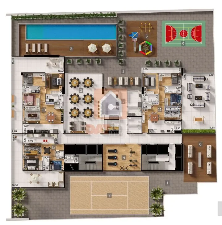 O edifício dispõe de uma área de lazer completa: