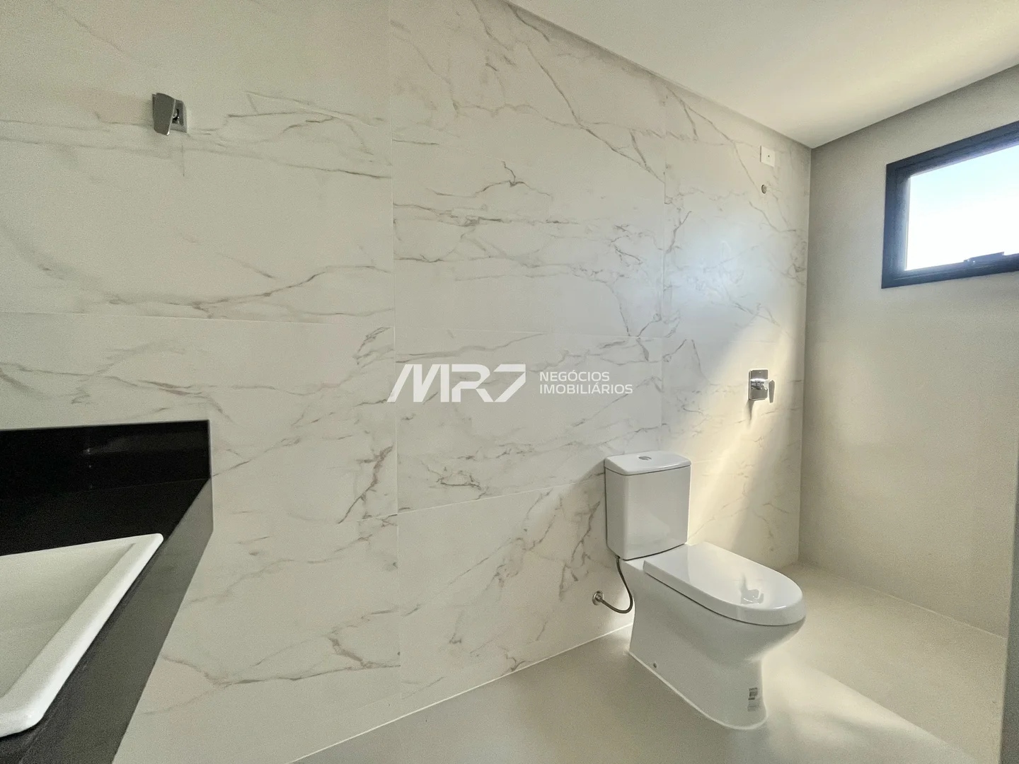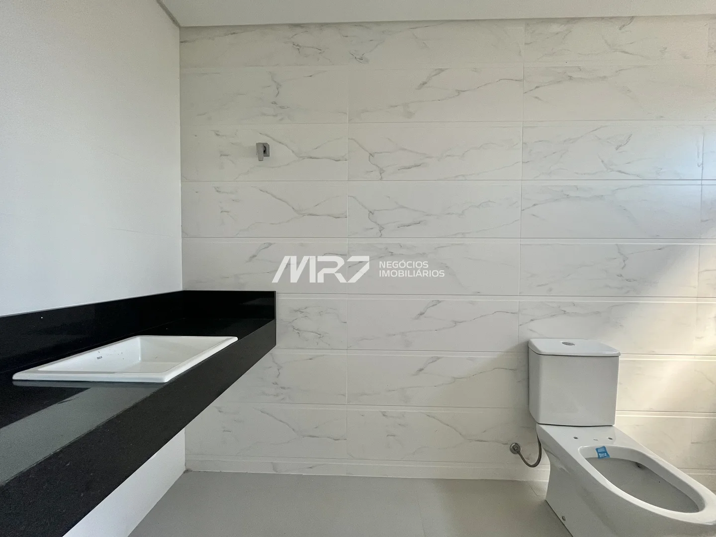 Banheiros com tampos em mármore ou granito, lavatórios e misturadores monocomando