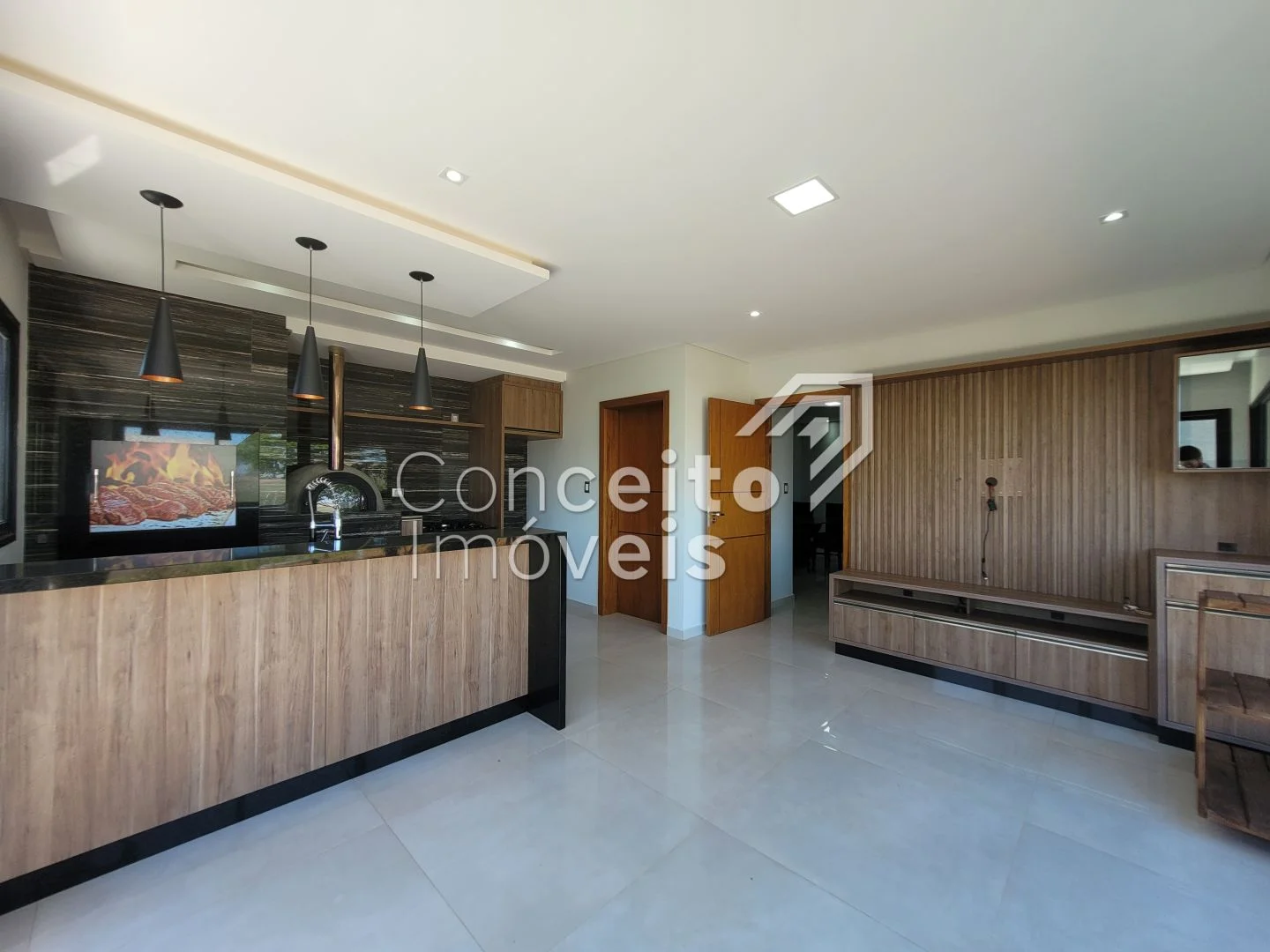 ✅ Hall com painel de TV e vista incrível para o campo