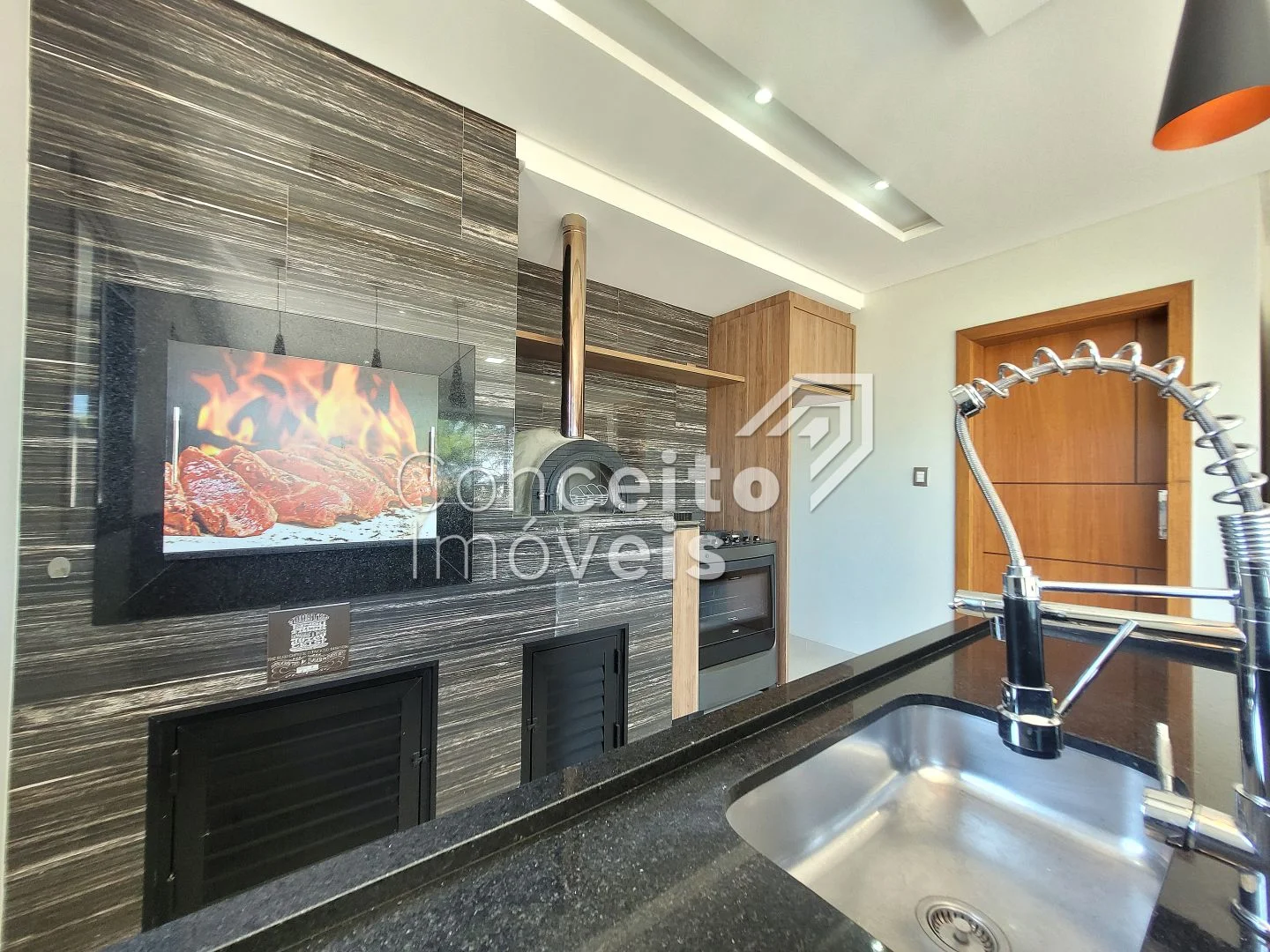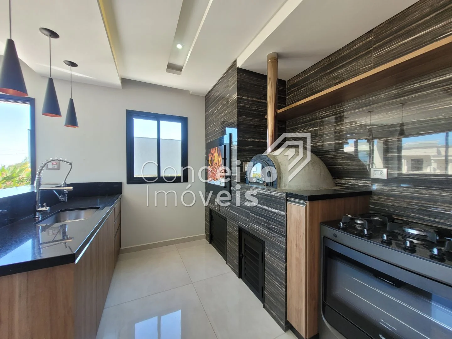 ✅ Área gourmet com forno de pizza, churrasqueira, banheiro e depósito