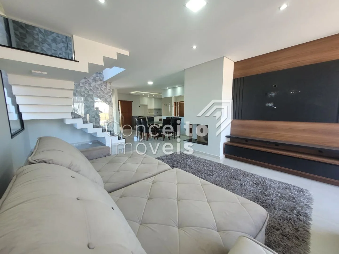 ✅ Sala de estar com sofá e painel de TV