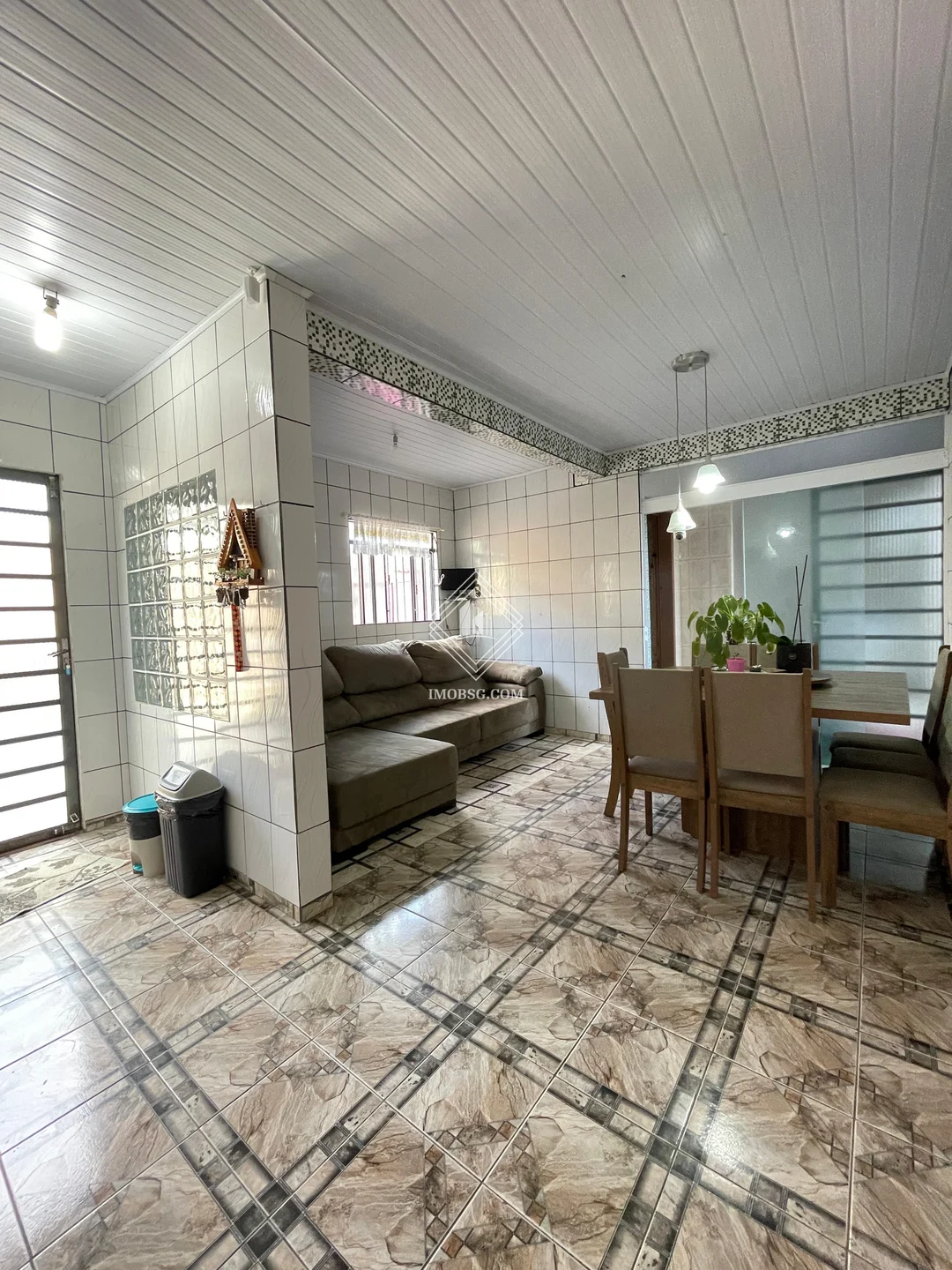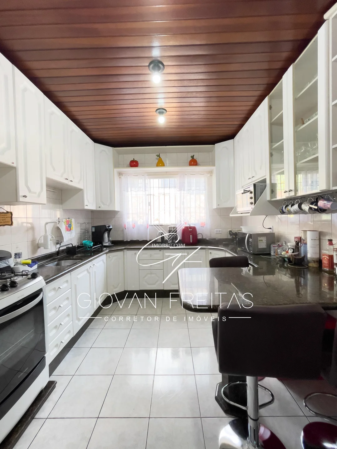 Com 270m² de área construída e um terreno de 490m², a casa semi-mobiliada oferece: