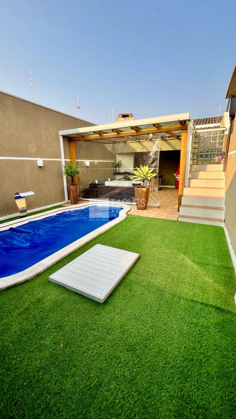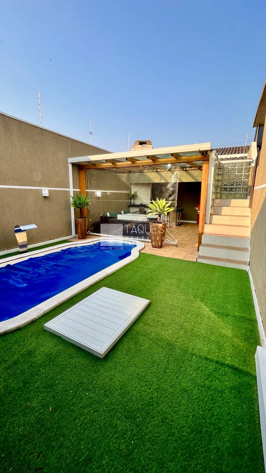 Piscina aquecida - 5x2,50 (jardim vertical + grama artifical)