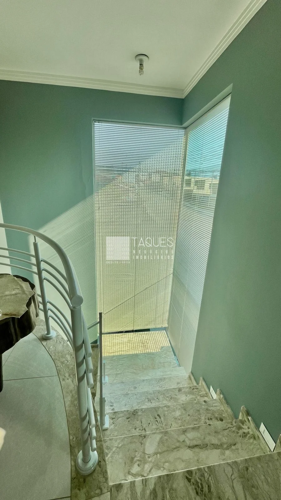 (escada revestimento travertino + piso polido porcelanato)