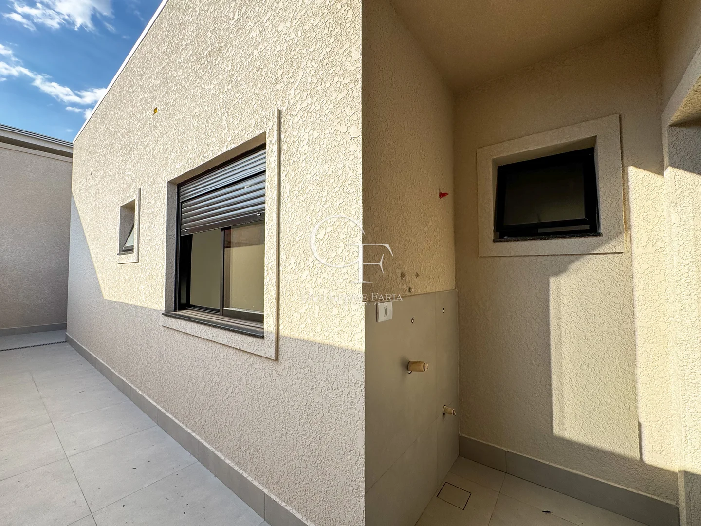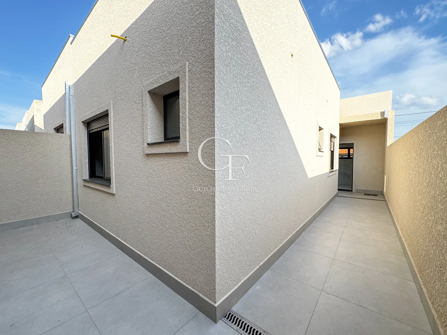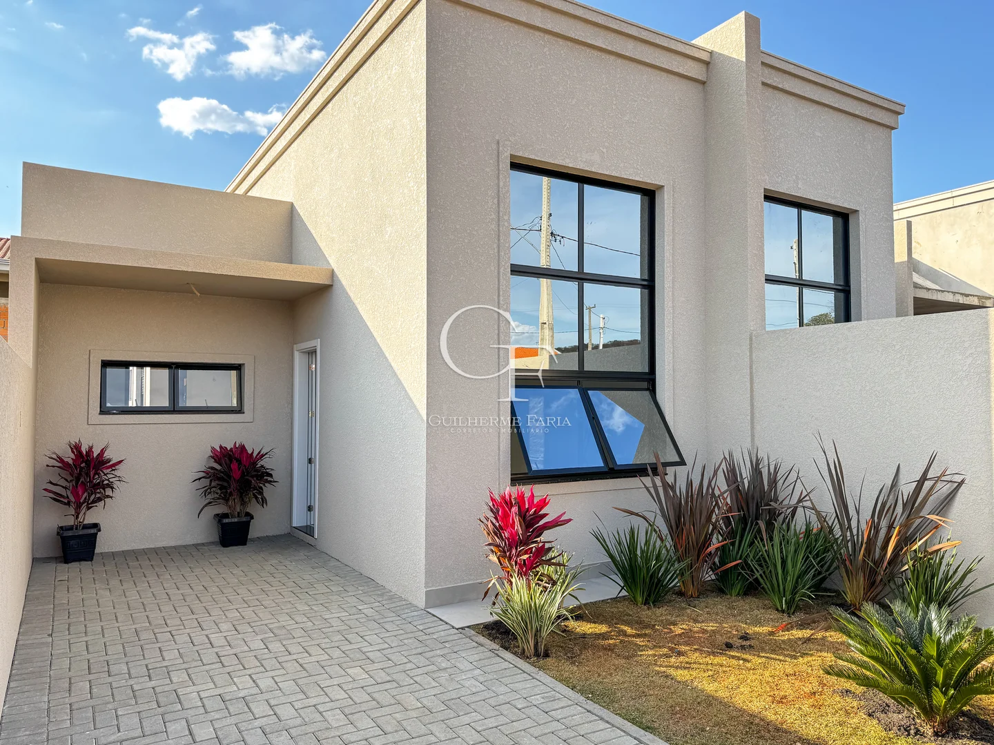 🏡 Casas com pé-direito alto (3,90m na sala), porcelanato 90x90, janelas amplas e garagem para dois veículos.
