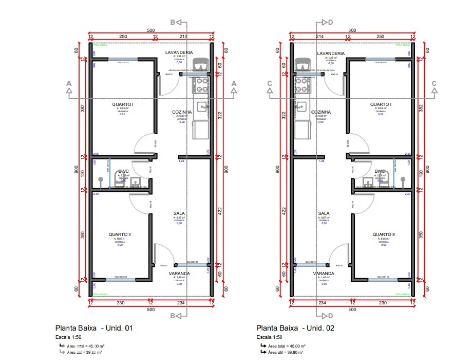 - Área Total45.00m²