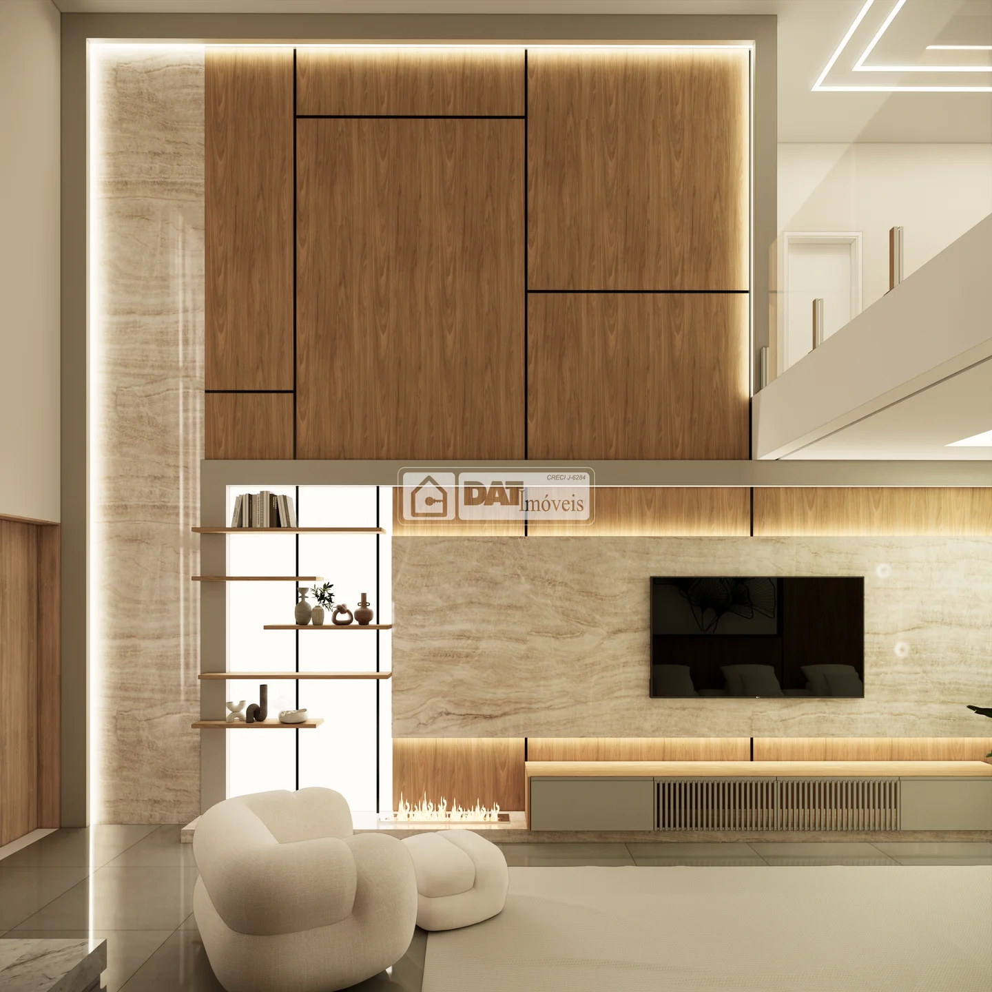 Piso Superior: Sala íntima, 2 Suítes, 2 delas com sacada. A Suíte-Máster possui closet, sacada privativa e banheira de imersão com excelente vista para o condomínio!