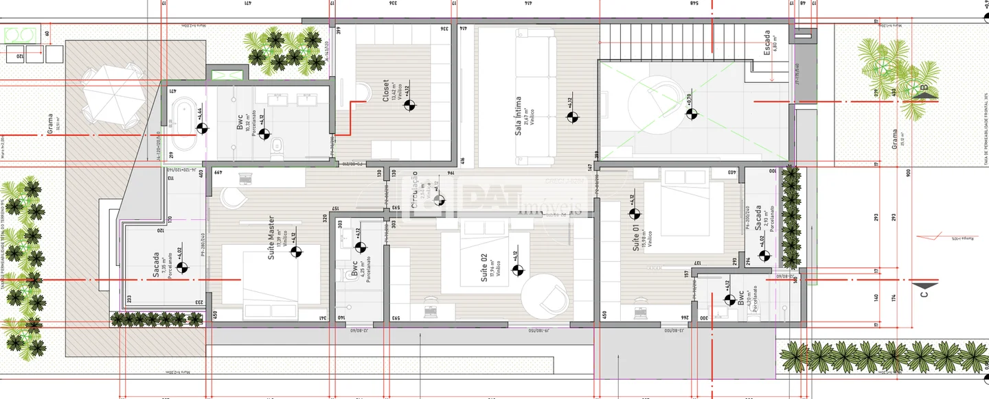 Área do terreno: 300 m²