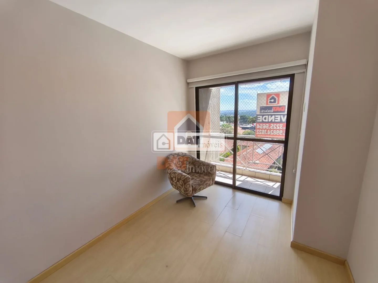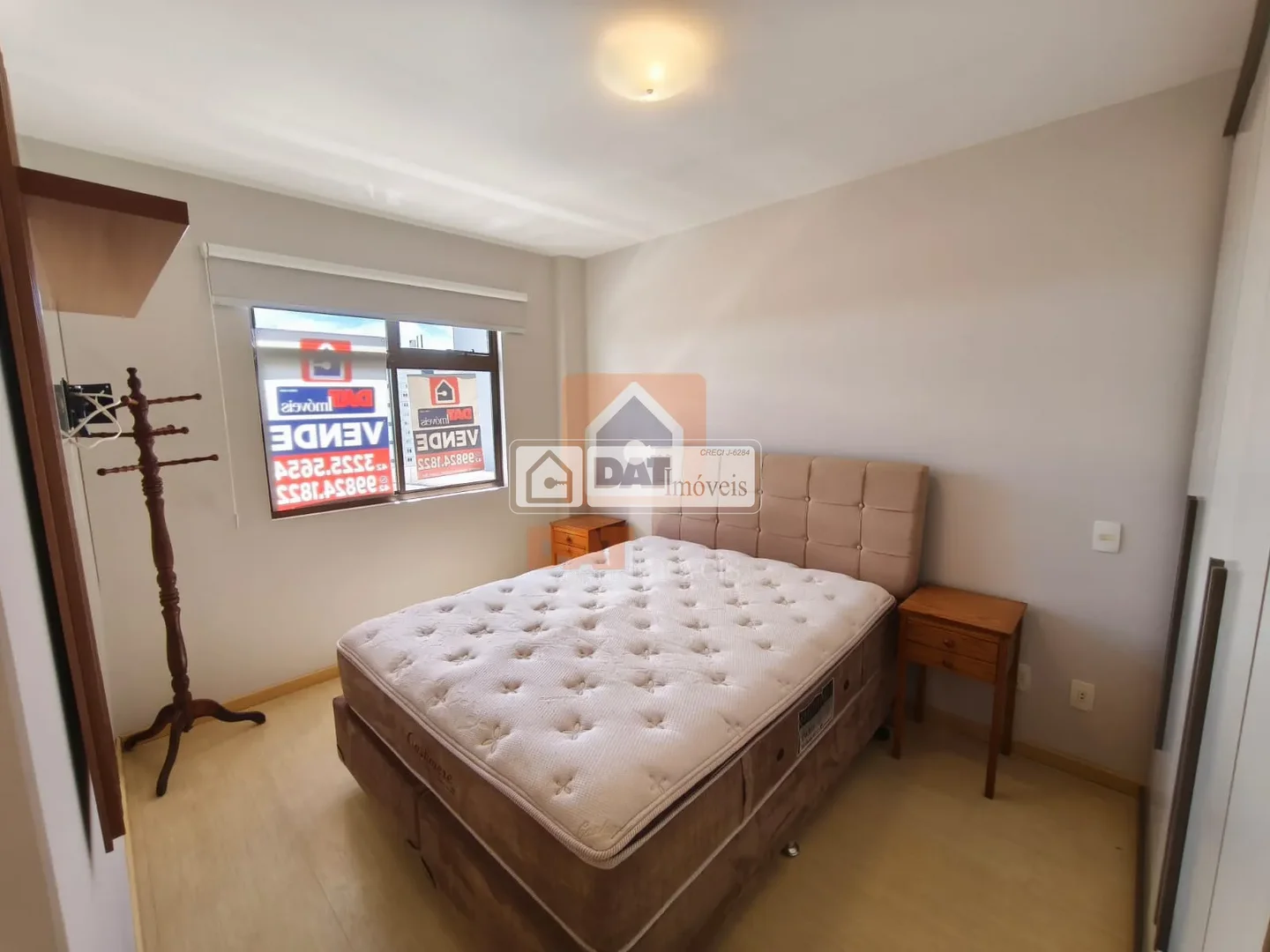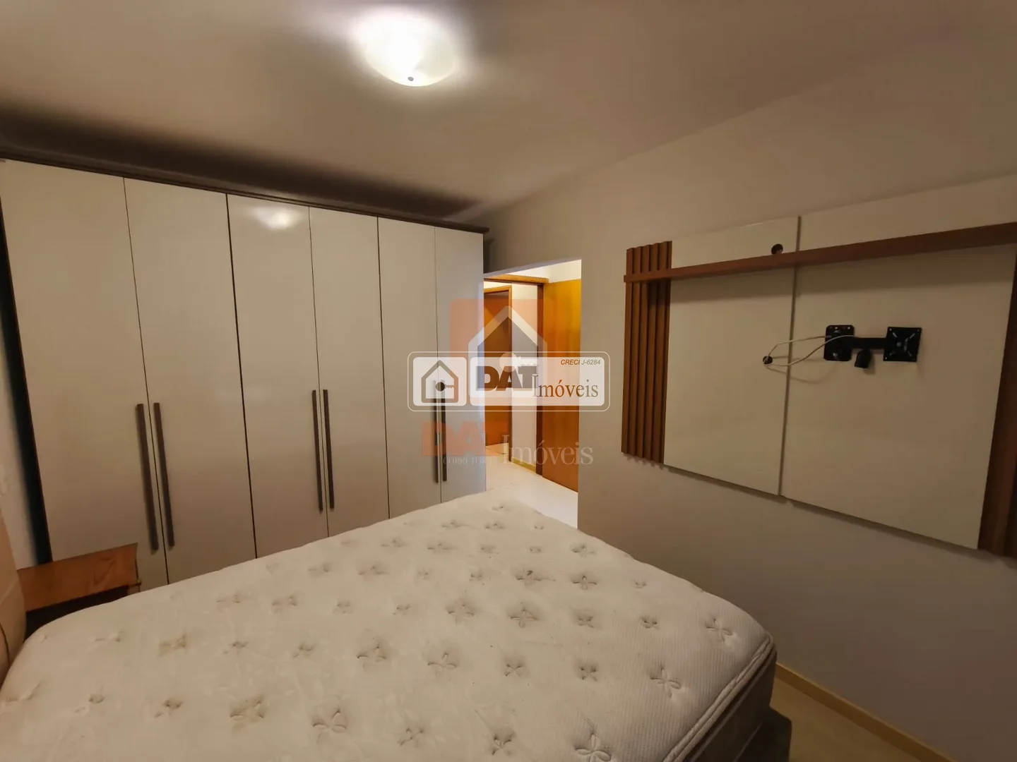 3 quartos, sendo a suíte com guarda-roupa, cama e estante para TV, outro quarto com guarda-roupa e outro com sacada;