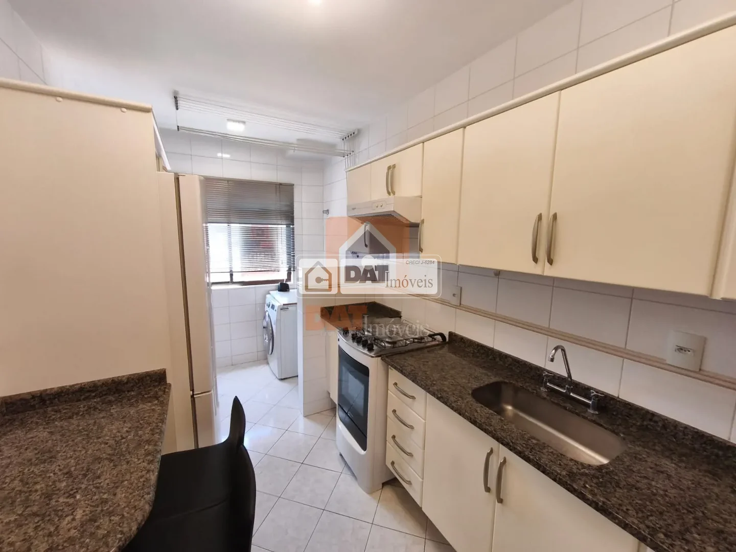 Lavanderia integrada com a cozinha, com máquina de lavar;