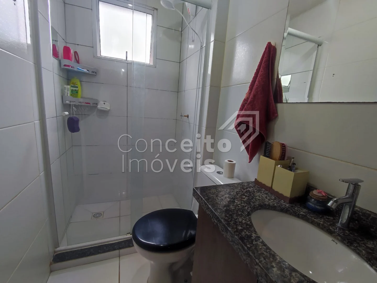 ✅ Banheiro com box em vidro e armário planejado