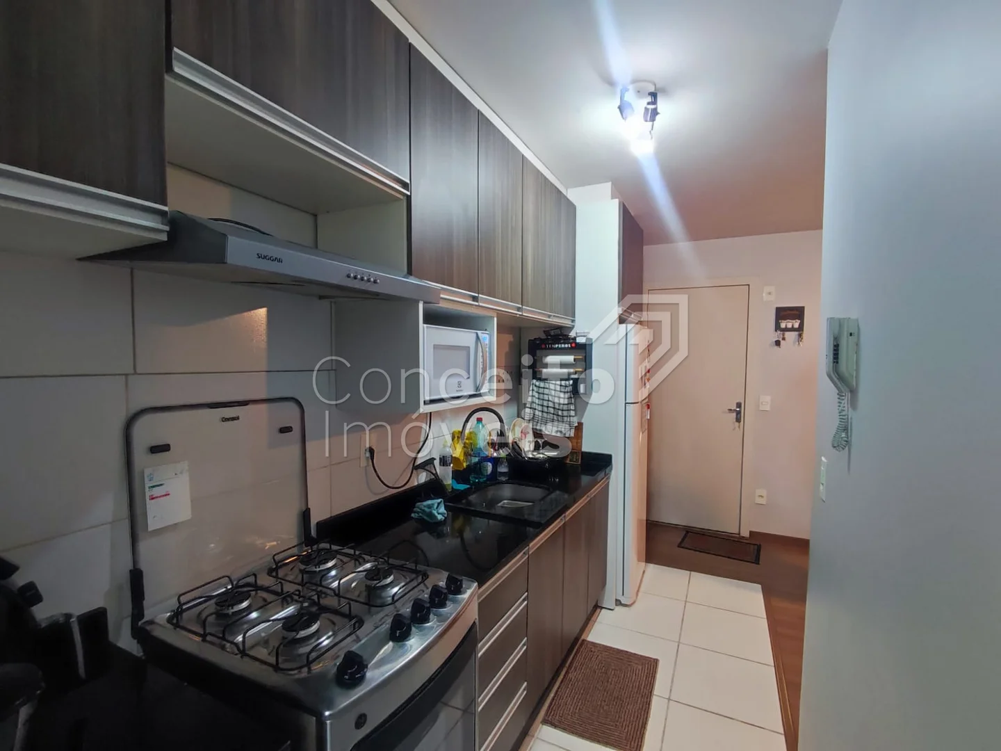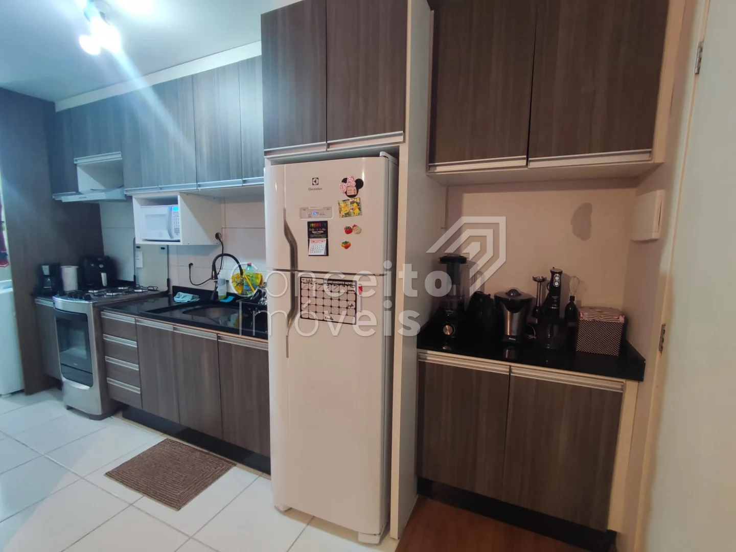 ✅ Cozinha com armários planejados, integrada à lavanderia