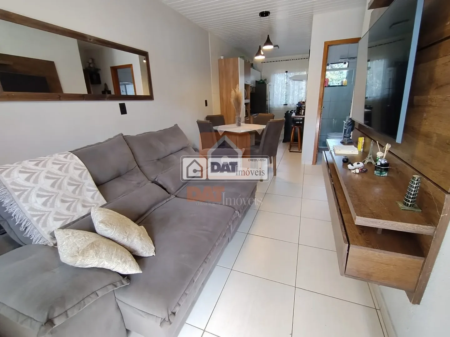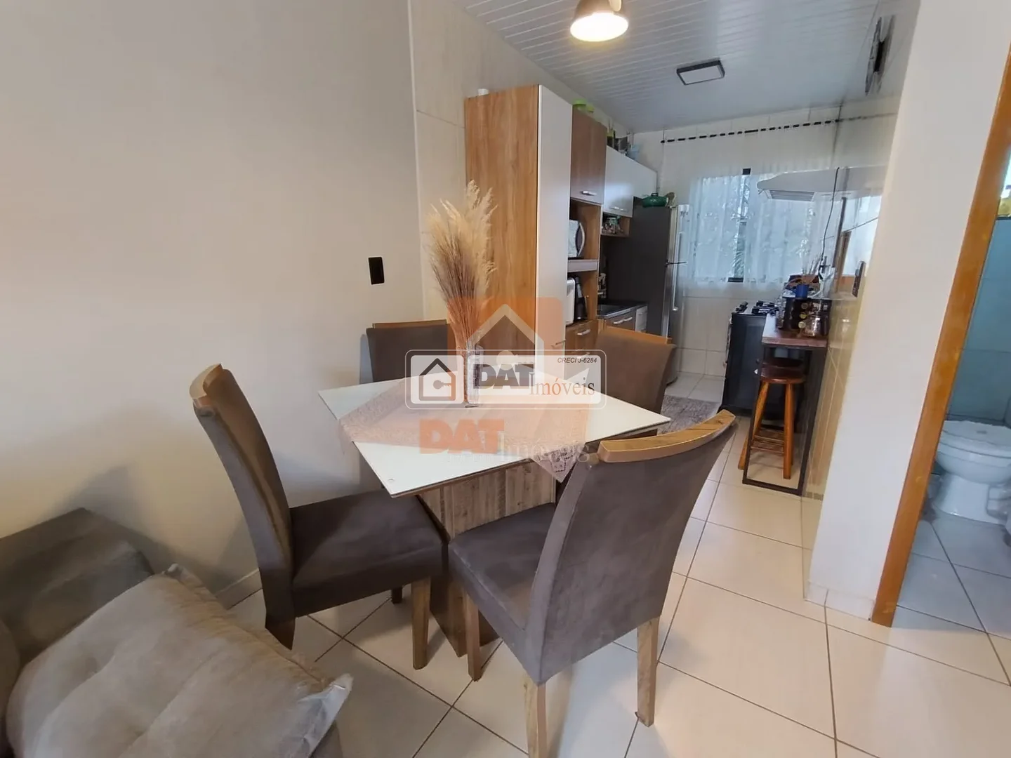 Possui sala de estar e jantar conjulgada, cozinha;