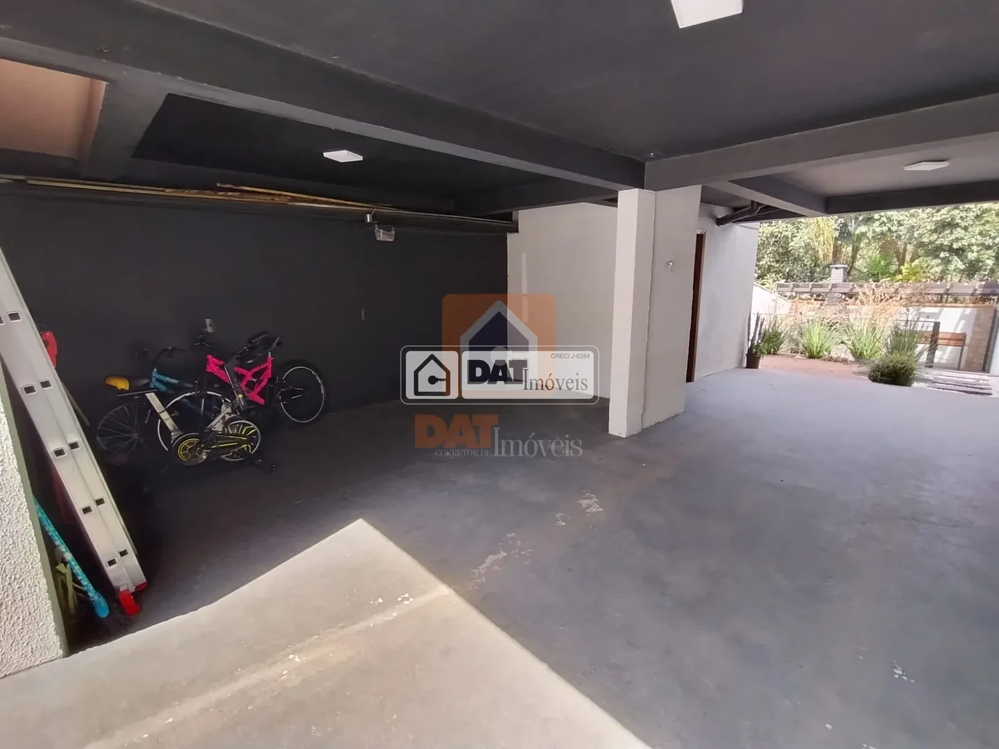 Garagem para 3 carros pequenos ou 2 grandes com espaço reversível coberto (para montar uma academia, por exemplo);
