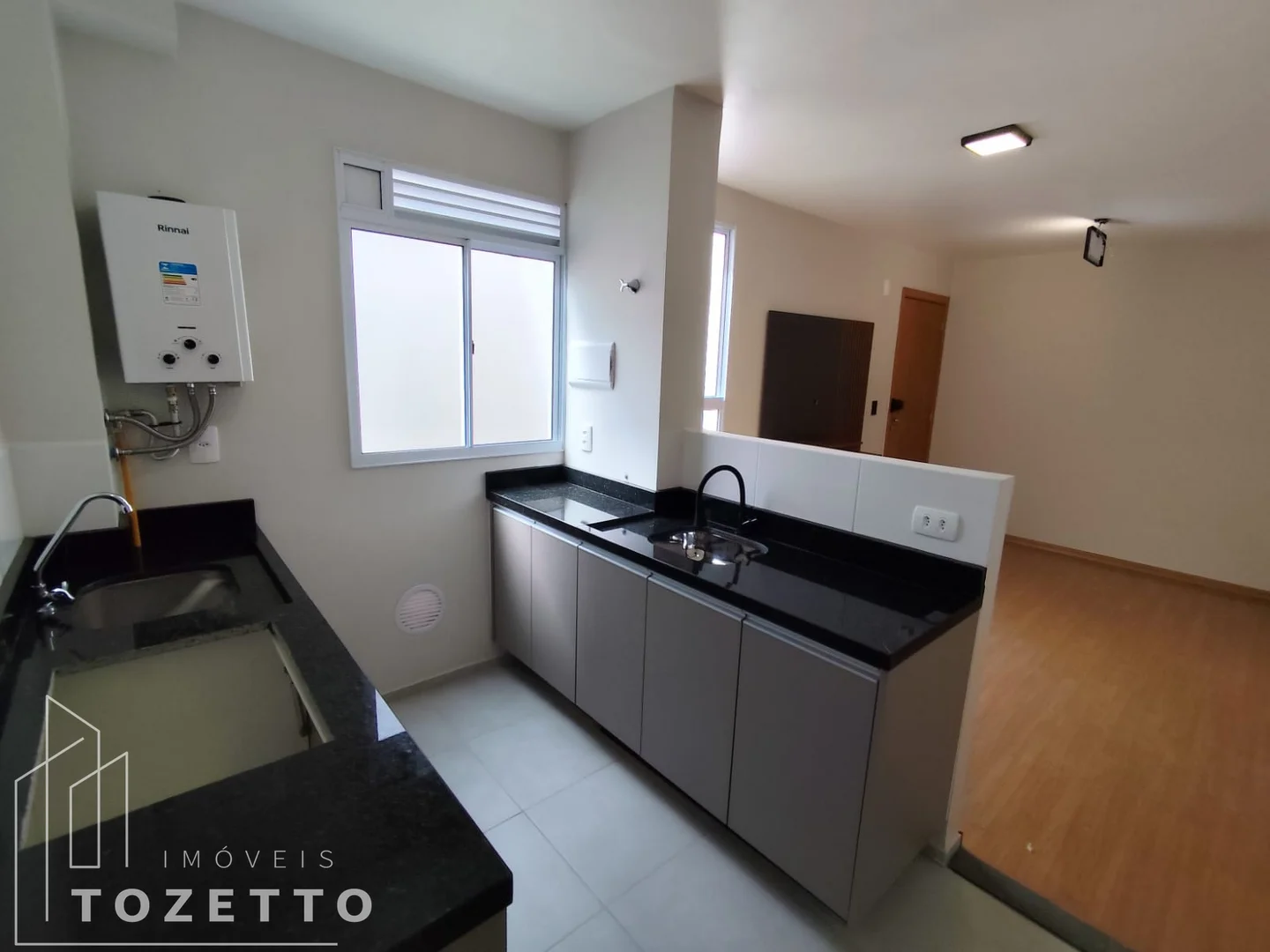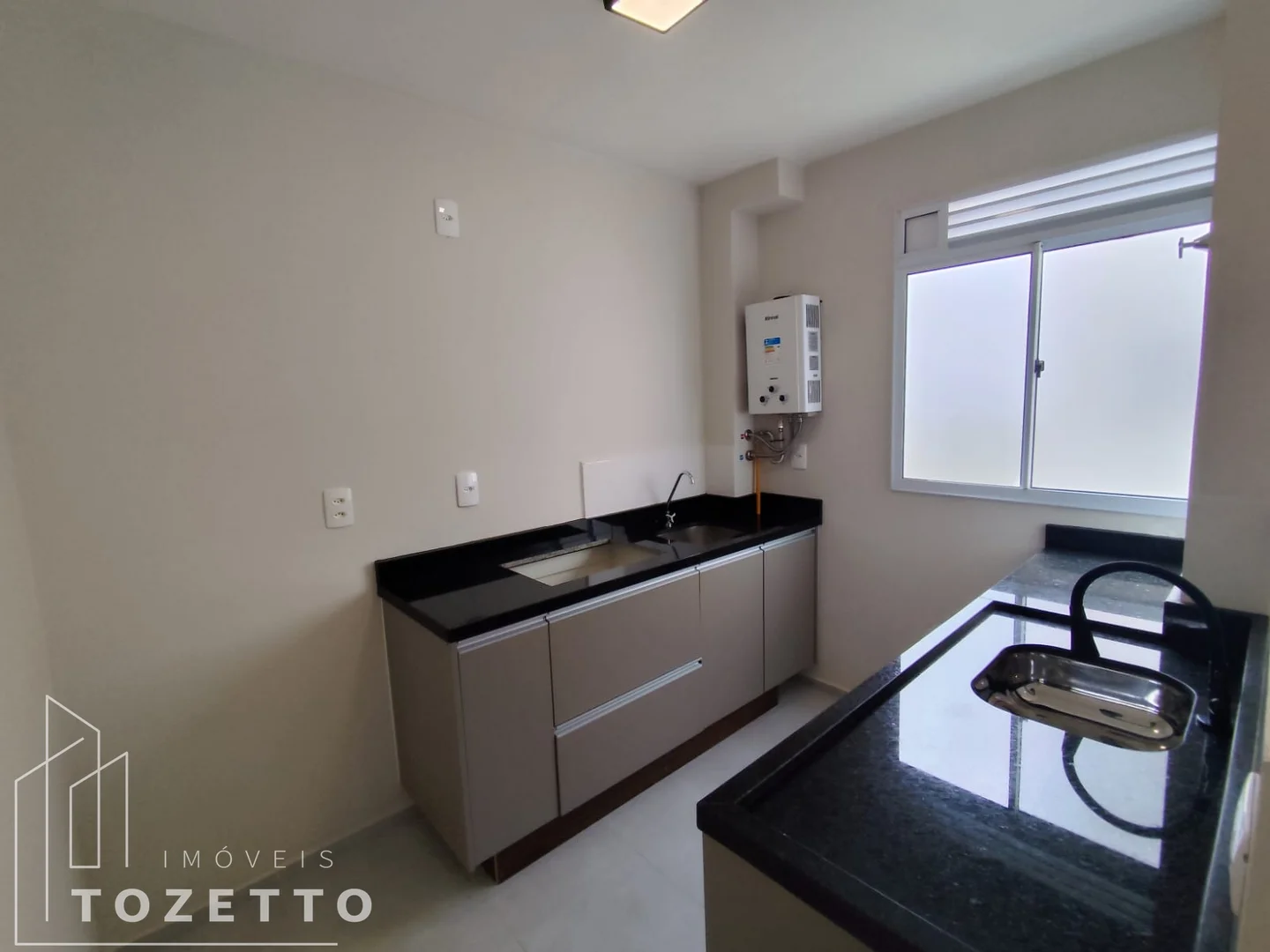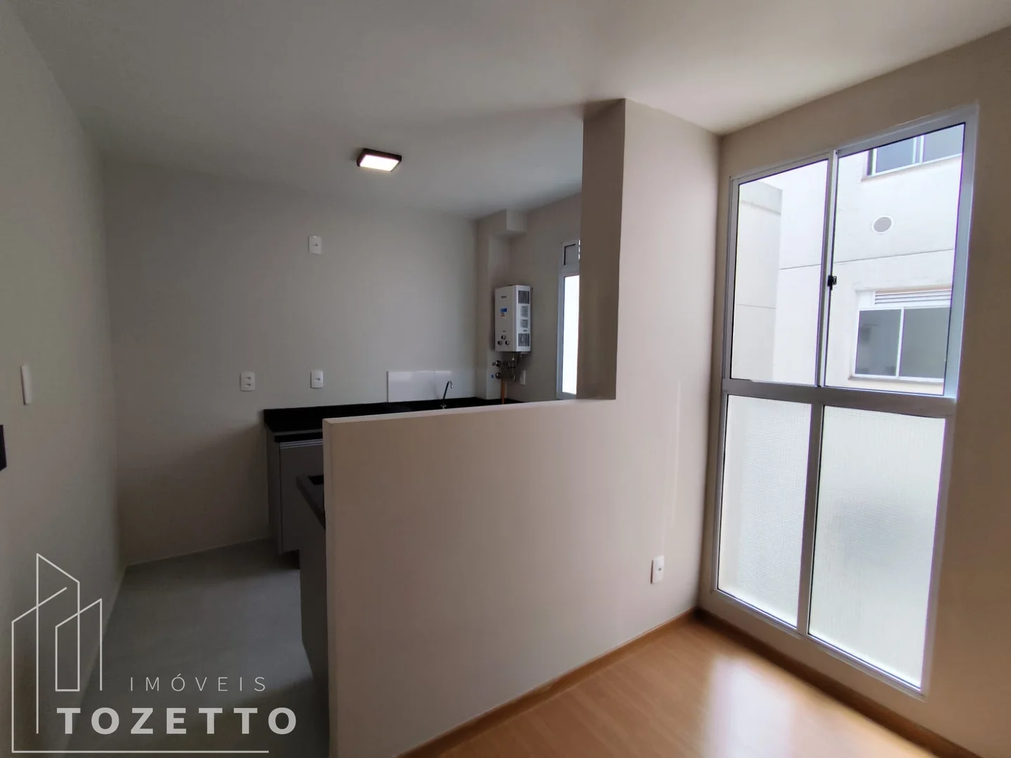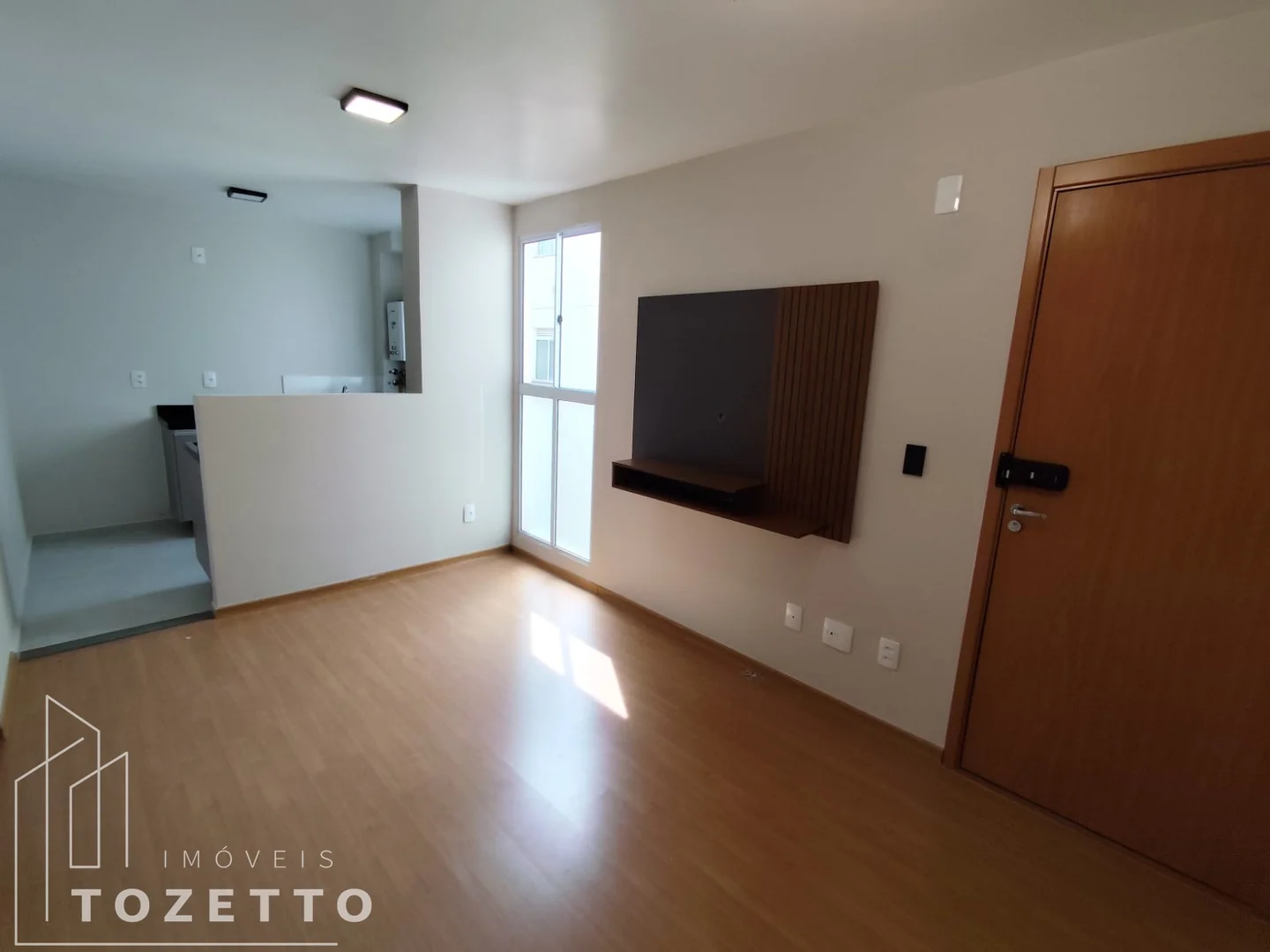 2 quartos amplos, sala para dois ambientes, cozinha e área de serviços integrada, banheiro e uma vaga de garagem demarcada.
