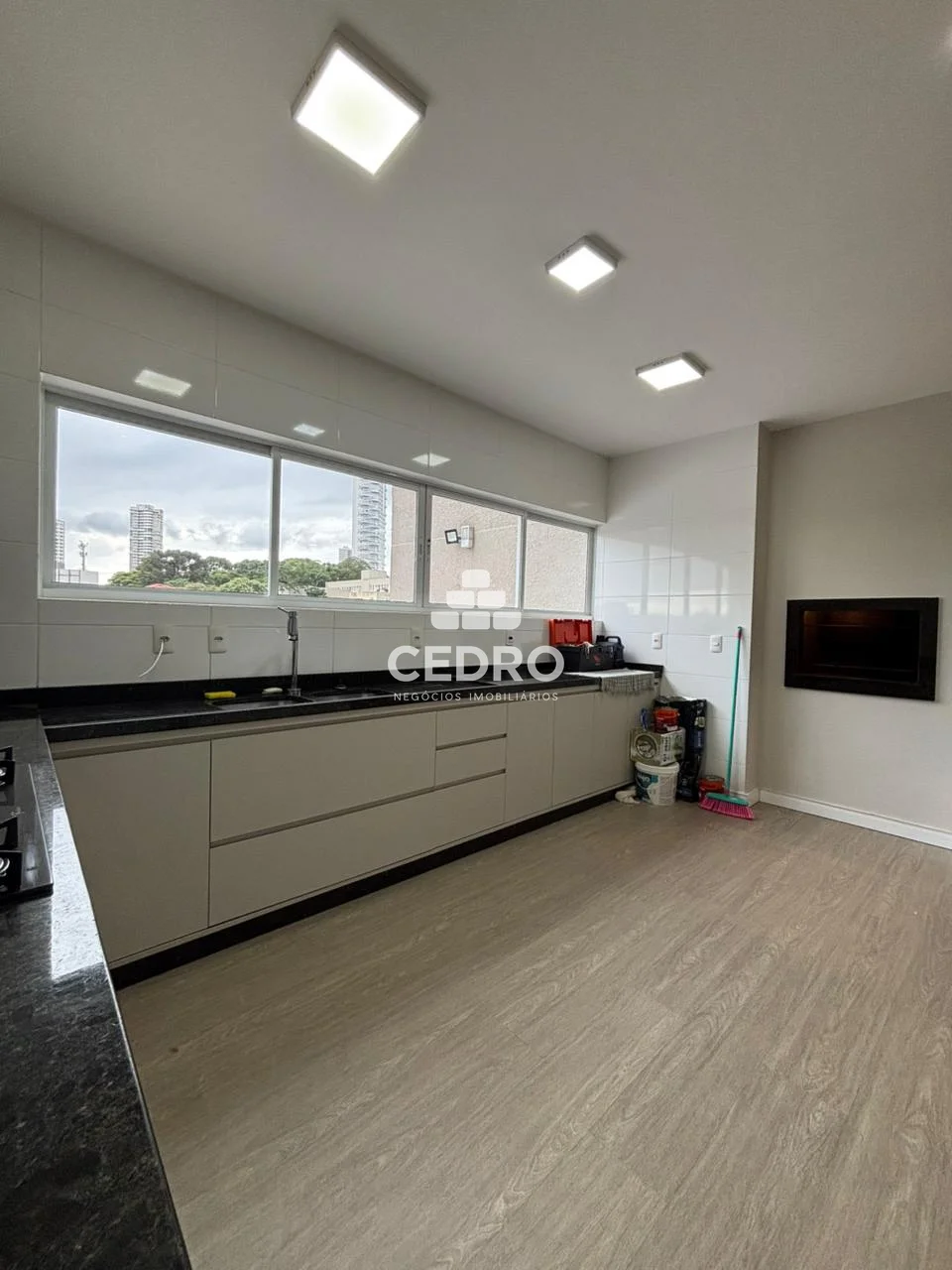 - Cozinha com armários planejados em ambiente exclusivo, contendo churrasqueira;