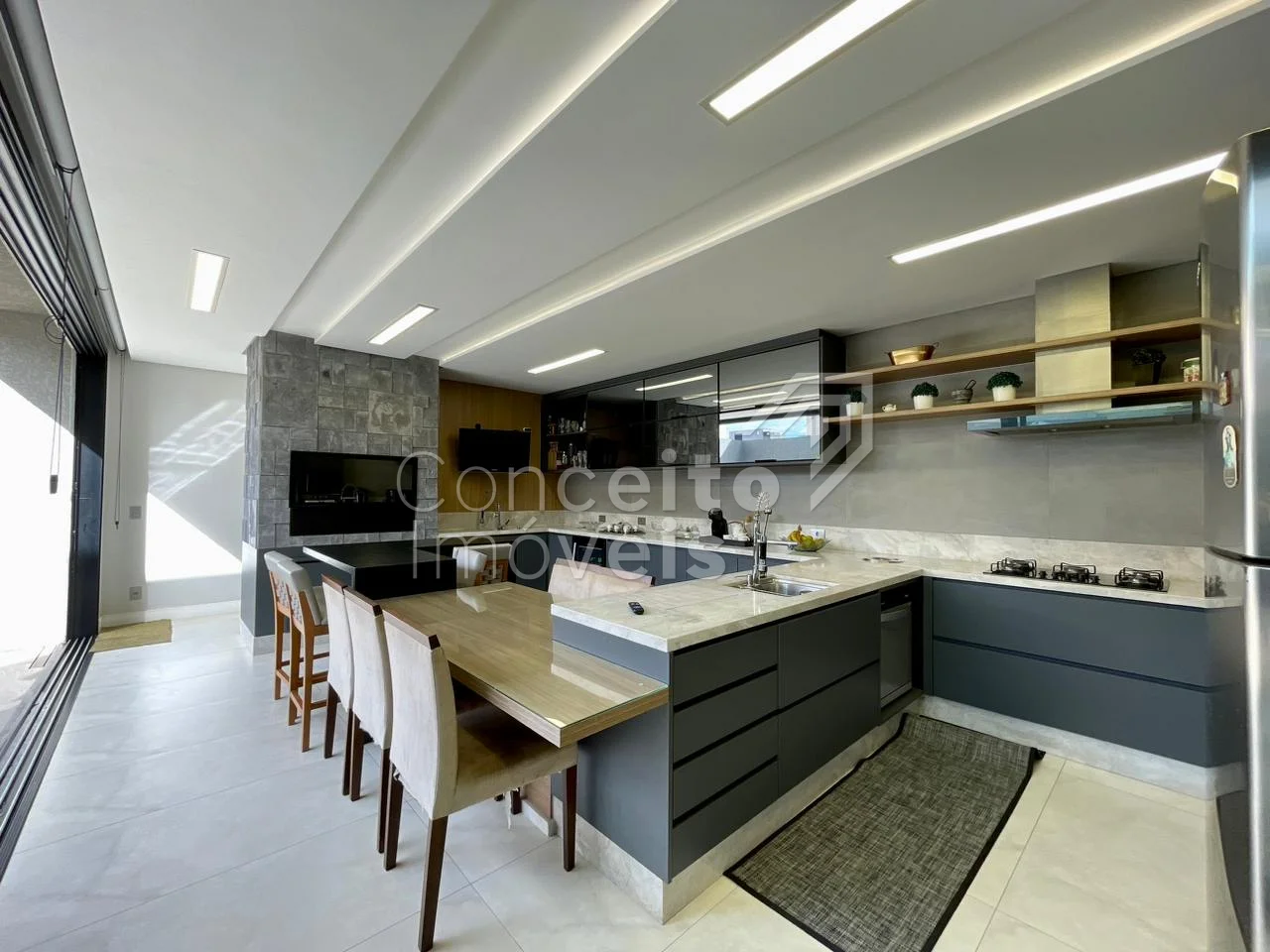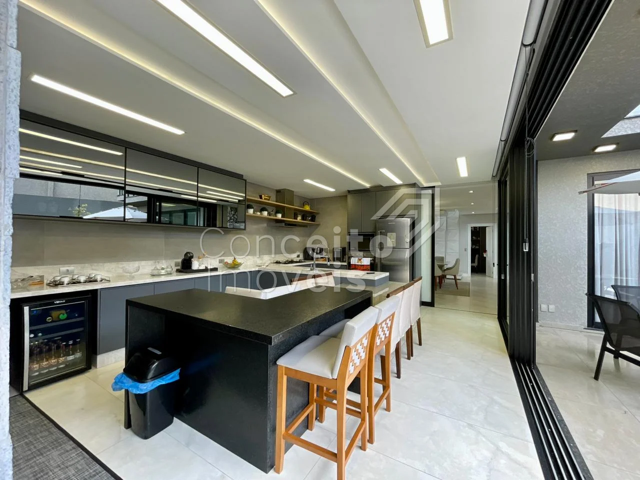 ✅ Área gourmet integrada à cozinha (conceito aberto) com vista privilegiada para a piscina