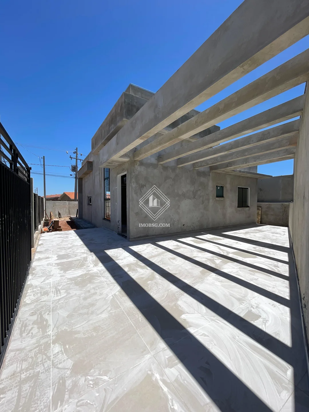 Garagem para dois carros com estrutura para cobertura;