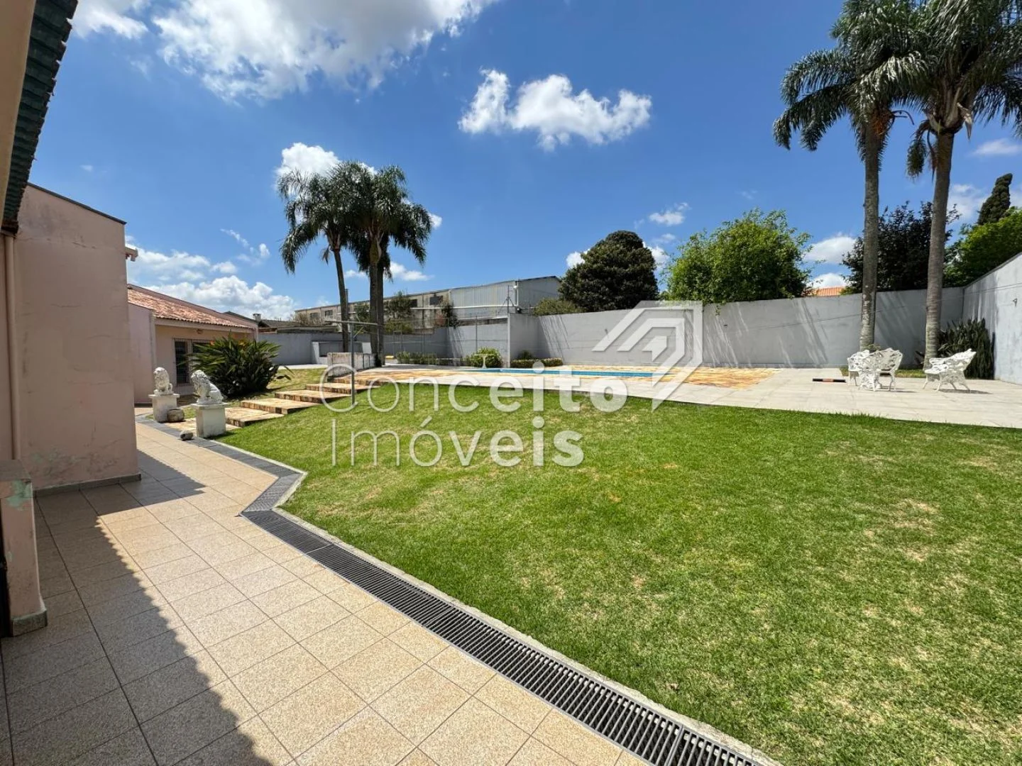 ✅ Ampla área externa com piscina, quadra poliesportiva, canil e jardim.