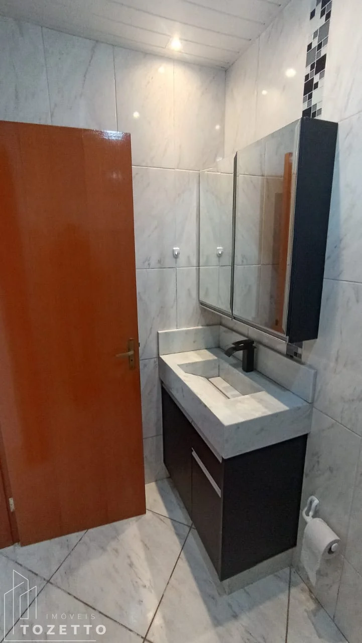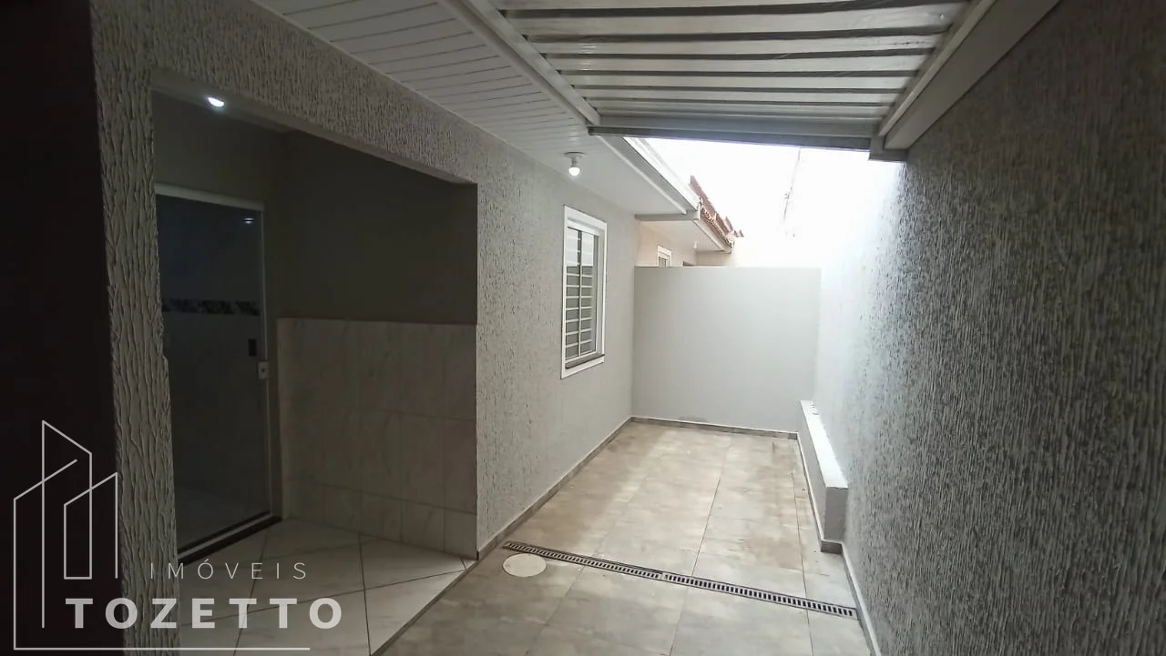 Cozinha sob medida, bancada em mármore, garagem coberta, muros altos, portão elétrico basculante, jardim, churrasqueira coberta, projeto luminotécnico instalado, banheiro com armário e box de vidro, grades na janela.