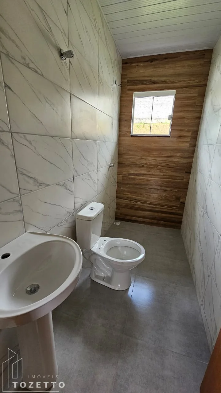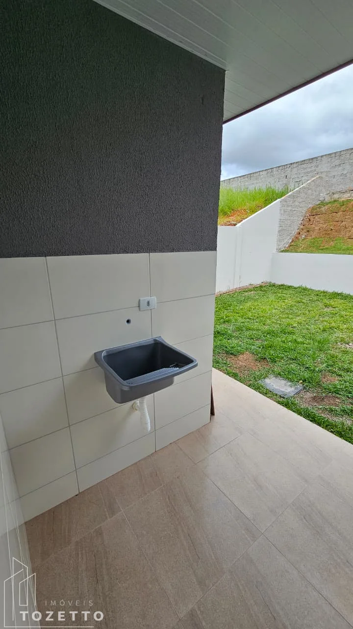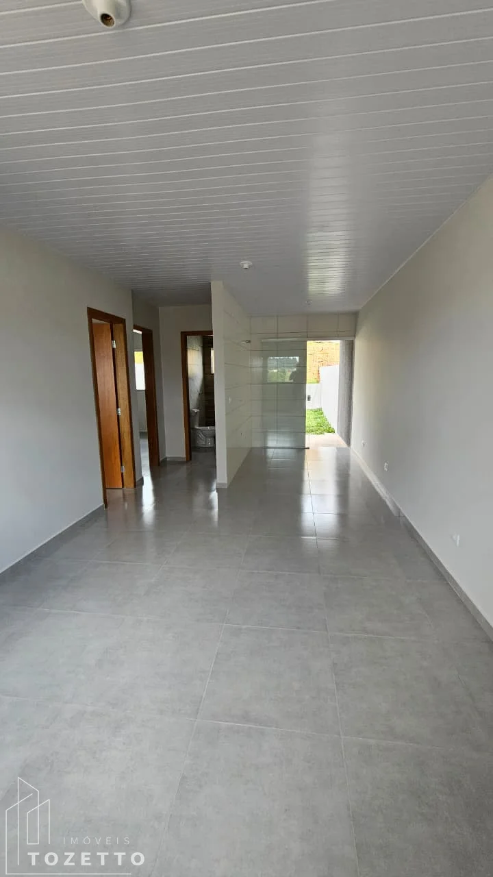Possui área de 56,09m², distribuídos em 2 amplos dormitórios, sala e cozinha em conceito aberto, banheiro social, área de serviço, garagem e amplo terreno nos fundos.