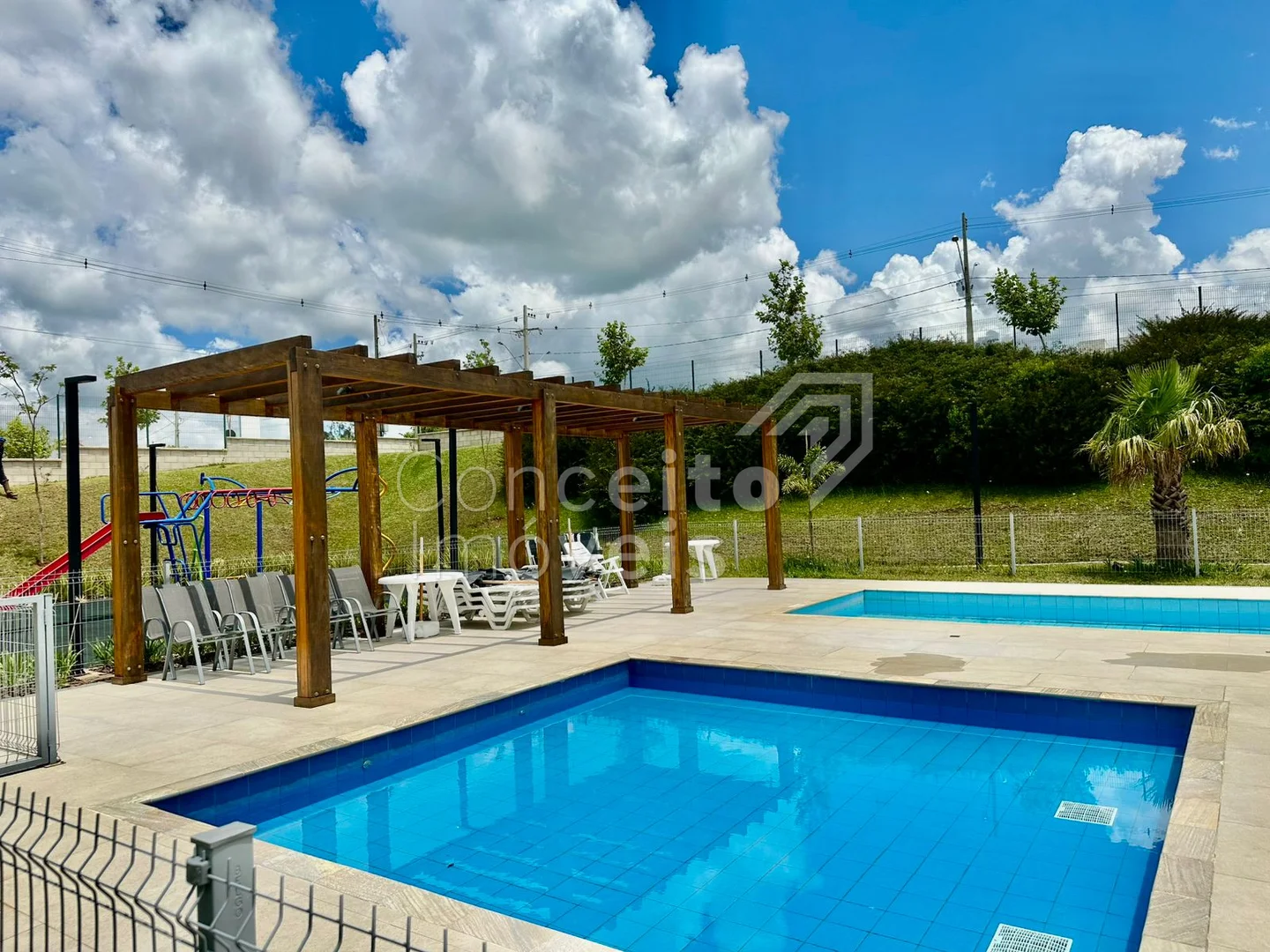 ✅ Área do lazer do condomínio: portaria 24h, salão de festas com churrasqueira externa, quadra poliesportiva, piscinas, playground, estacionamento para visitantes e muito mais!