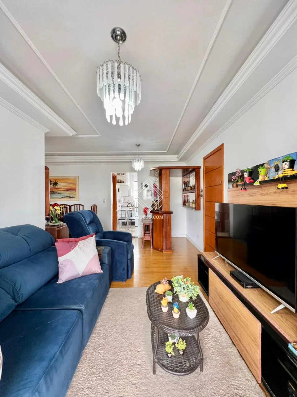 Belíssimo apartamento todo em gesso, porém com gesso rebaixado e com iluminação na sala de estar e de jantar.