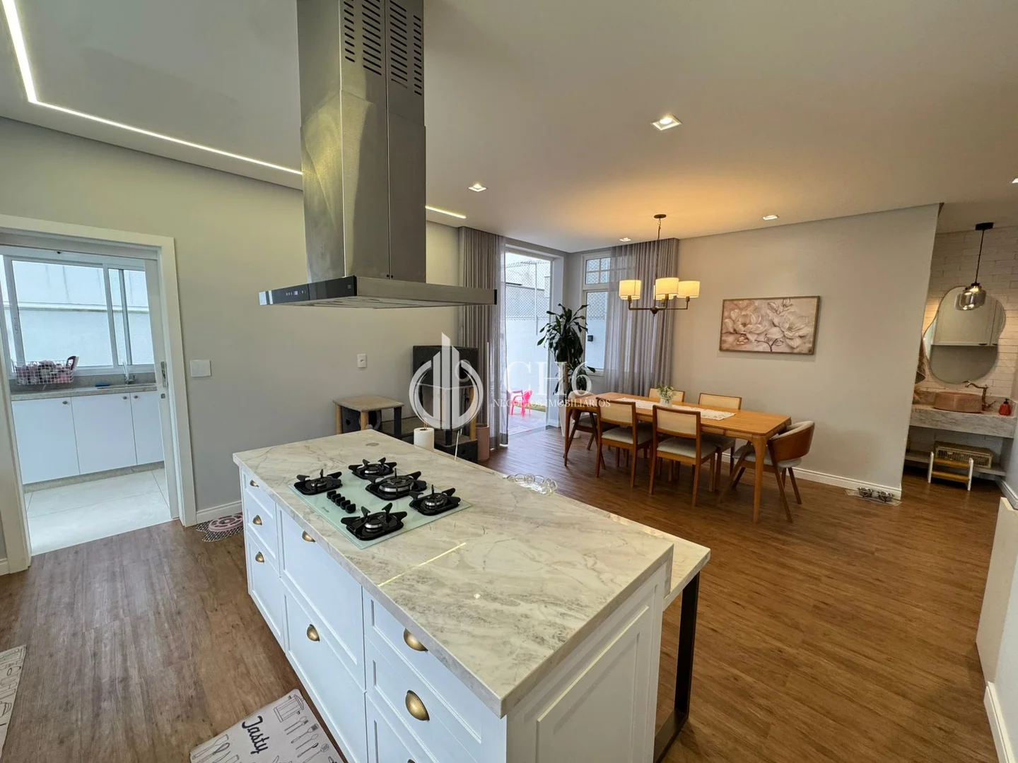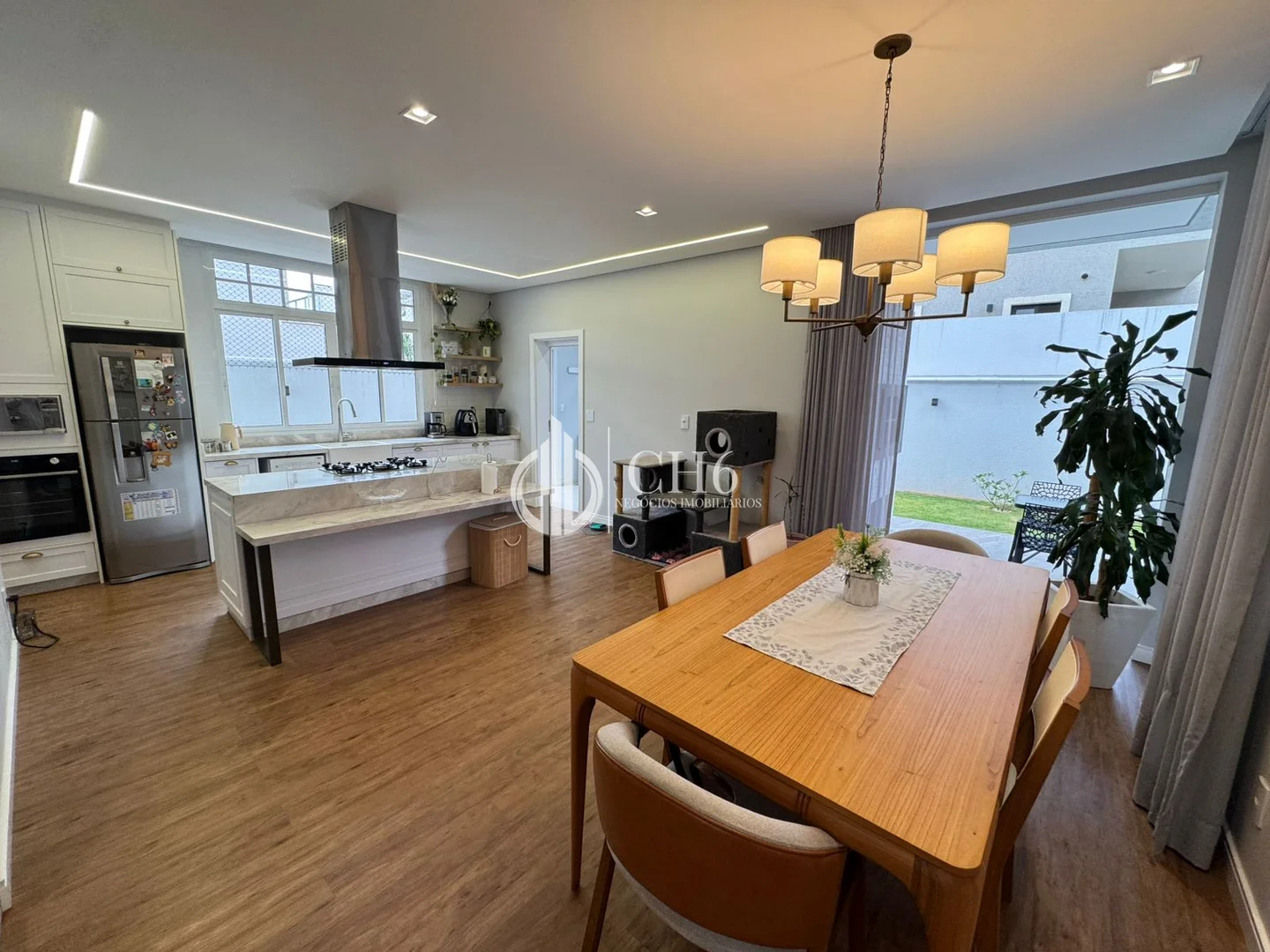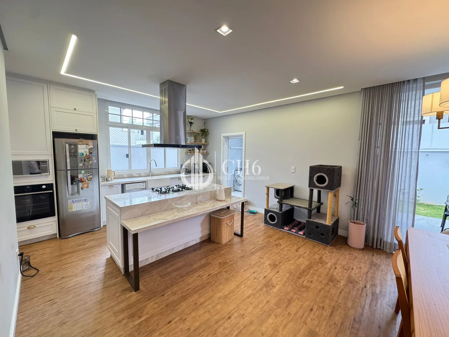 Residência neoclássica com construção recente, projeto arquitetônico sofisticado e acabamento de alto padrão, pensada para quem busca elegância, conforto e exclusividade. O imóvel se destaca pelo pé-direito elevado, iluminação natural abundante, lustres imponentes, cortinas sob medida e detalhamento em gesso com iluminação em LED, criando ambientes amplos, aconchegantes e bem planejados.