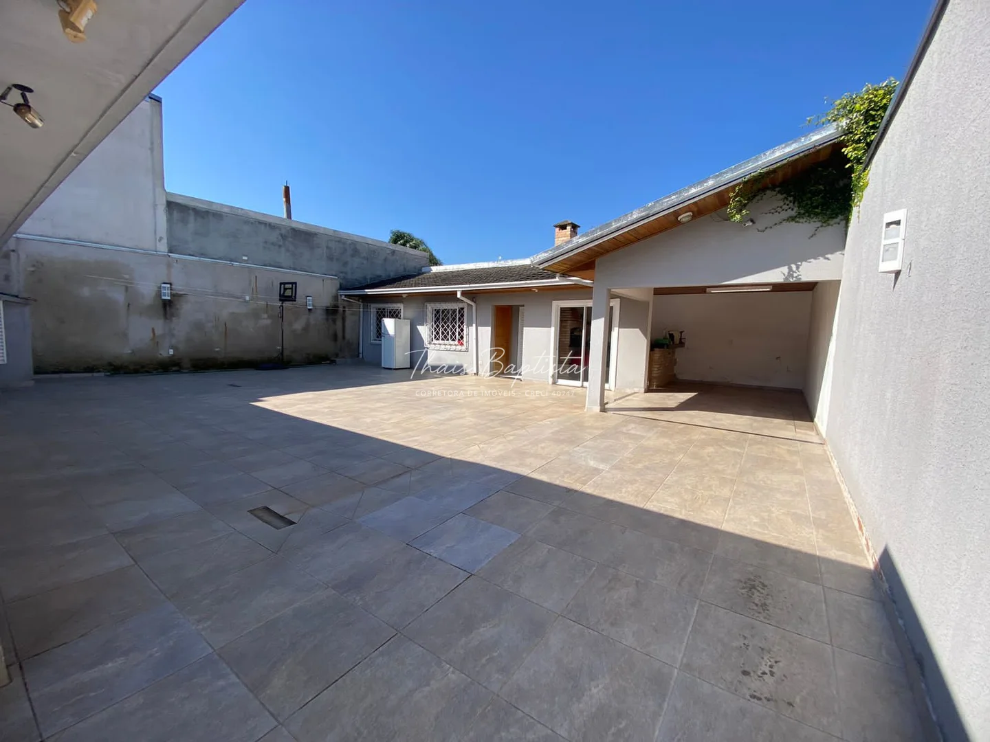 Garagem coberta para 02 veículos e espaço descoberto para mais 03 carros