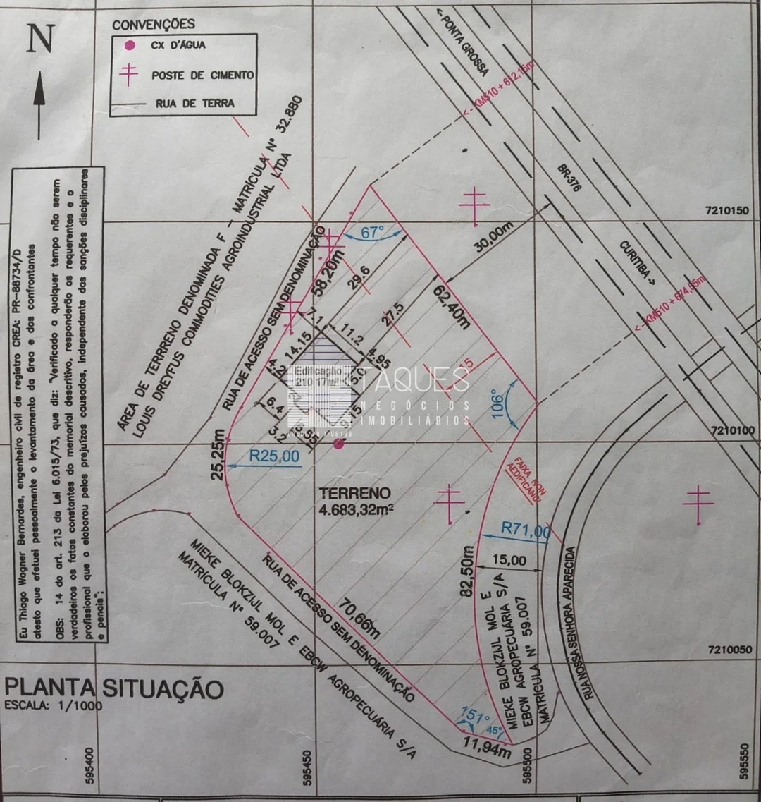 Excelente terreno a venda de frente para a BR-376, sentindo Ponta Grossa a Curitiba na Rodovia do Café, ao lado do pátio de triagem da LOUIS DREYFUS, antes do segundo retorno, localização excelente e com grande potencial e fluxo constante veículos, ideal para diversos os tipos de empreendimentos.