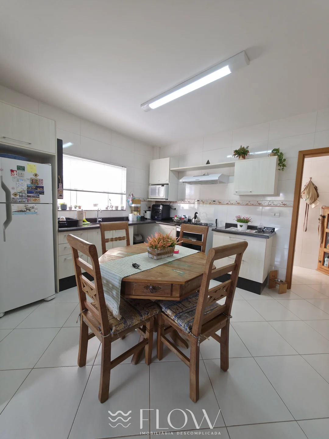 Sala para 2 ambientes, cozinha com churrasqueira, área de serviço,