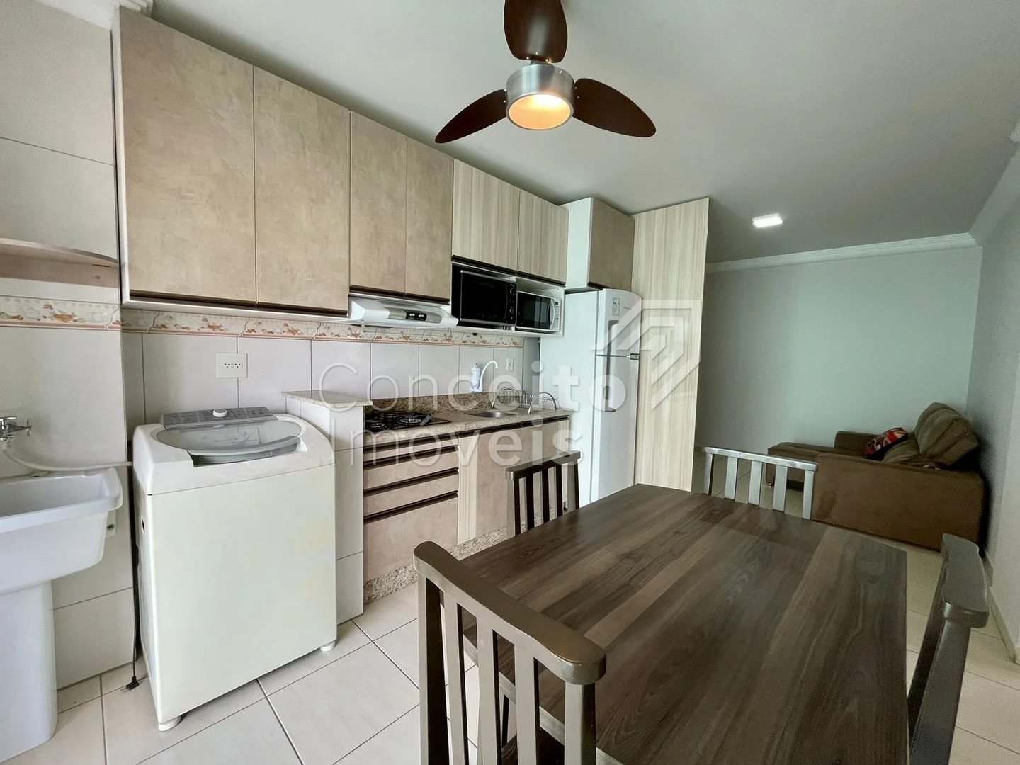 ✅ Cozinha com armários planejados e eletrodomésticos (geladeira, forno e micro-ondas)