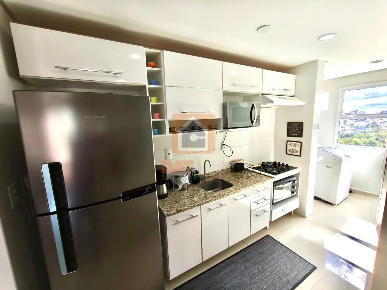 Cozinha estilo americana integrada a área de serviço;